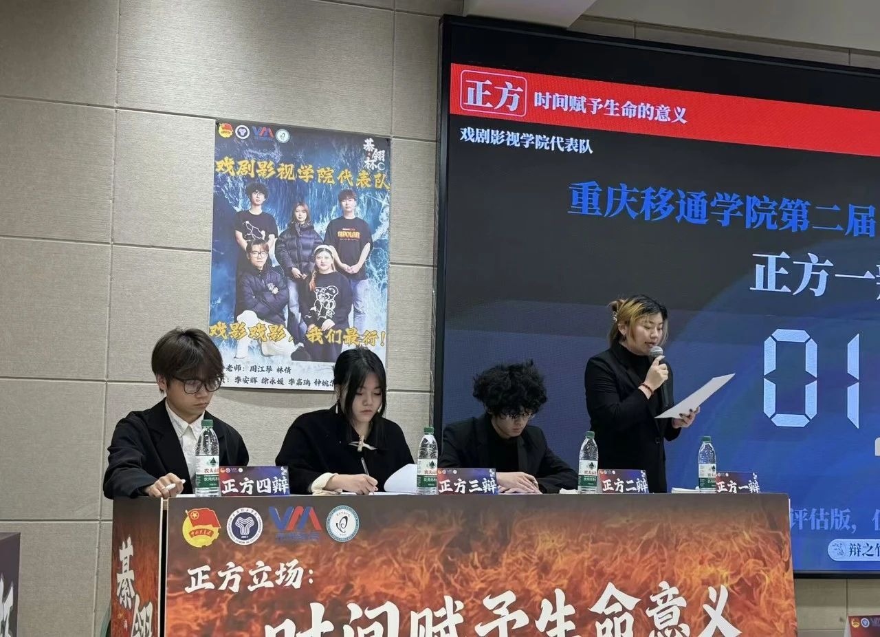 决赛场上,戏剧影视学院与大健康管理学院就“时间赋予生命意义还是生命赋予时间意义”展开巅峰终极对决。正方戏剧影视学院阐述时间的不可逆性决定了生命的轨迹与成长,从呱呱坠地到垂垂老矣,每一个阶段都在时间长河中留下深刻印记,历史的沉淀、文明的传承皆因时间而得以实现,从而赋予生命丰富内涵。反方大健康管理学院则坚定认为生命的主观能动性才是关键,生命的梦想、追求和创造力让时间充满价值,不同的生命选择造就了时间的多元意义。妙语连珠,引人深思,每一个观点的阐述都像是一颗投入心湖的石子,激起层层涟漪,让观众沉浸于对时间与生命深邃关系的思考之中。
