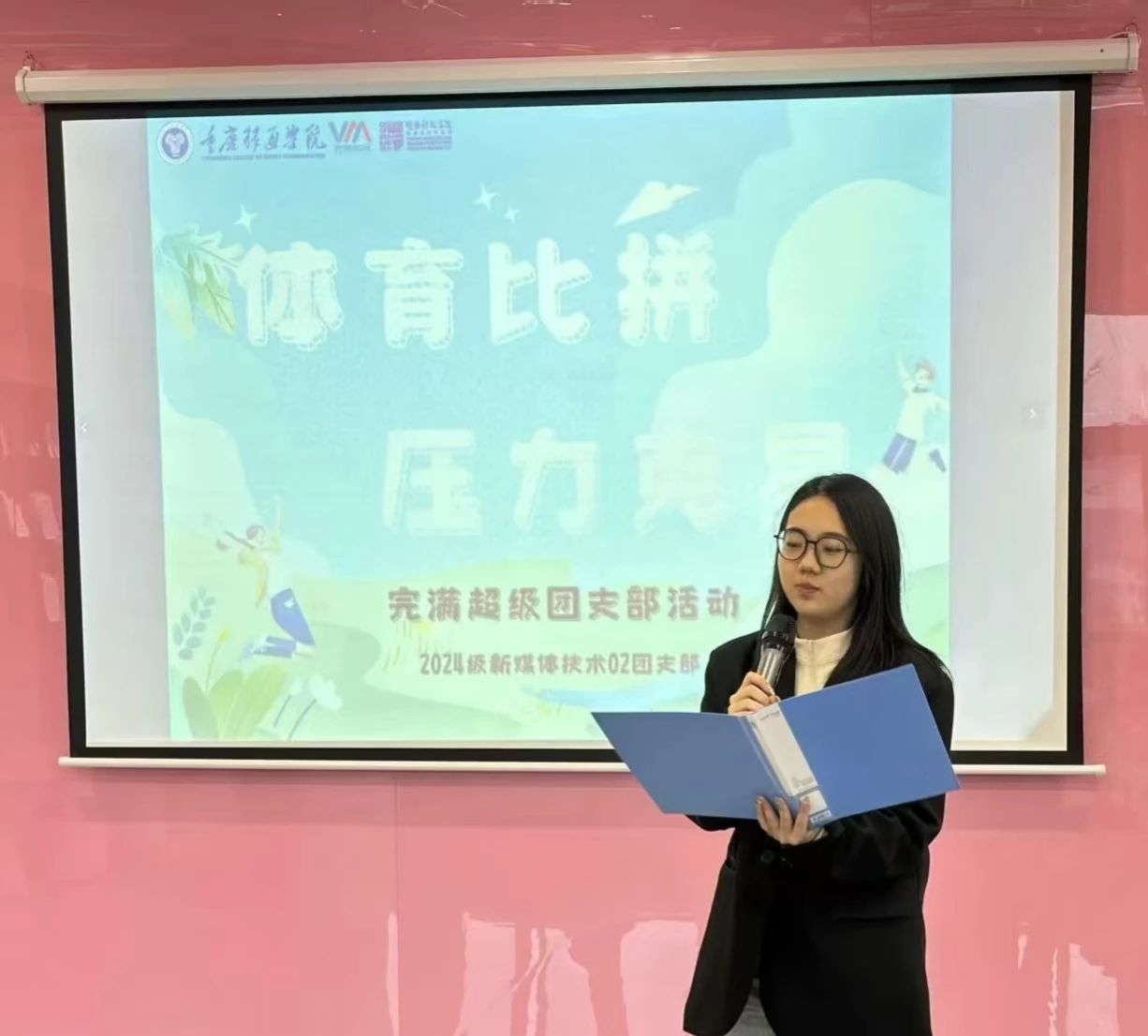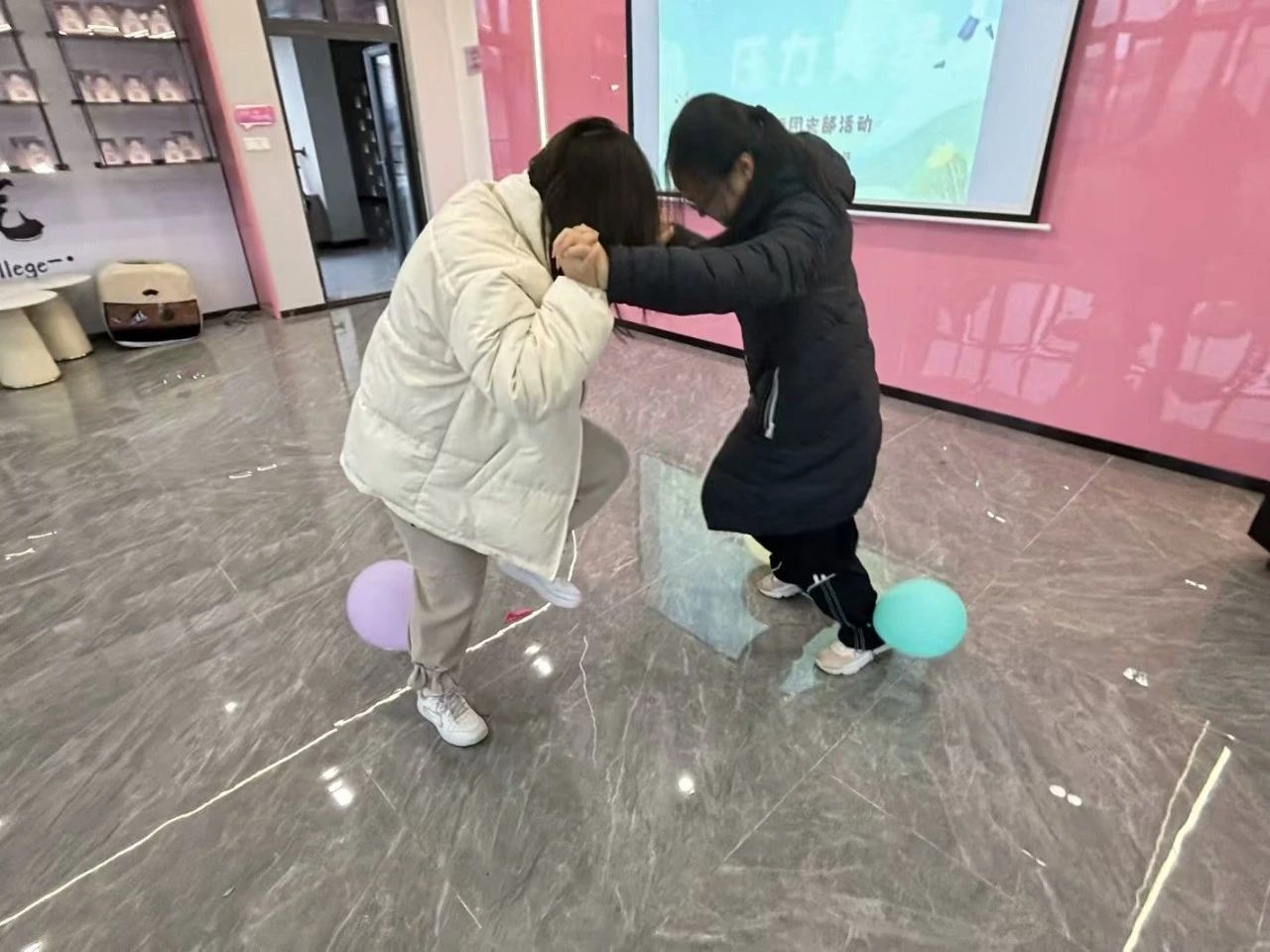 为了帮助同学们释放学习亦或是心理压力,丰富校园生活,增强团队协作精神,促进身心健康发展。戏剧影视学院2024级新媒体技术02团支部于11月22日13:00在丁山书院 天秤座朋辈交流中心开展了以 “体育比拼·压力克星” 为主题的完超活动。让同学们学会正确地认识压力,与焦虑对抗,与时间共处,营造轻松乐学的良好氛围本次活动由肖睿洋同学担任主持人,戏剧影视学院2024级新媒体技术2班全体成员参与。