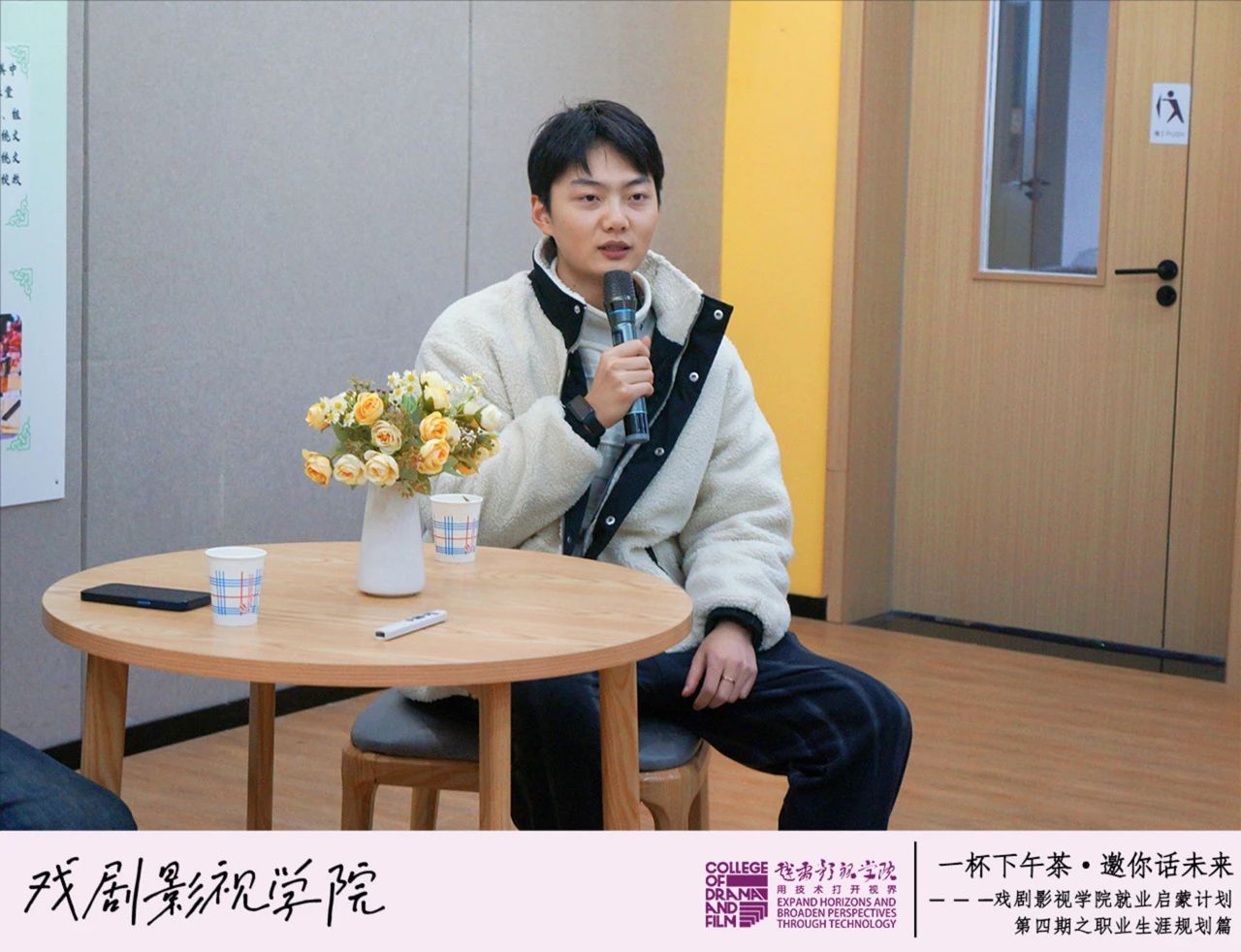 戏娃们在轻松愉快的下午茶时光中相聚,认真聆听着陈冰川老师的就业指导,热情地分享着自身的职业规划和兴趣爱好。陈冰川老师以亲切的语言,持续着这场关于职业选择的话题。在分享过程中,陈老师结合自身的职场经历,为同学们提供了许多实用的建议。 戏剧影视学院林西康老师总结表示:“同学们不必因为兴趣与职业选择不匹配而困惑,新时代的我们未来风光无限,我们有思维、会思考,现在目前拥有的一切都是为我们追求美好生活的助力。”