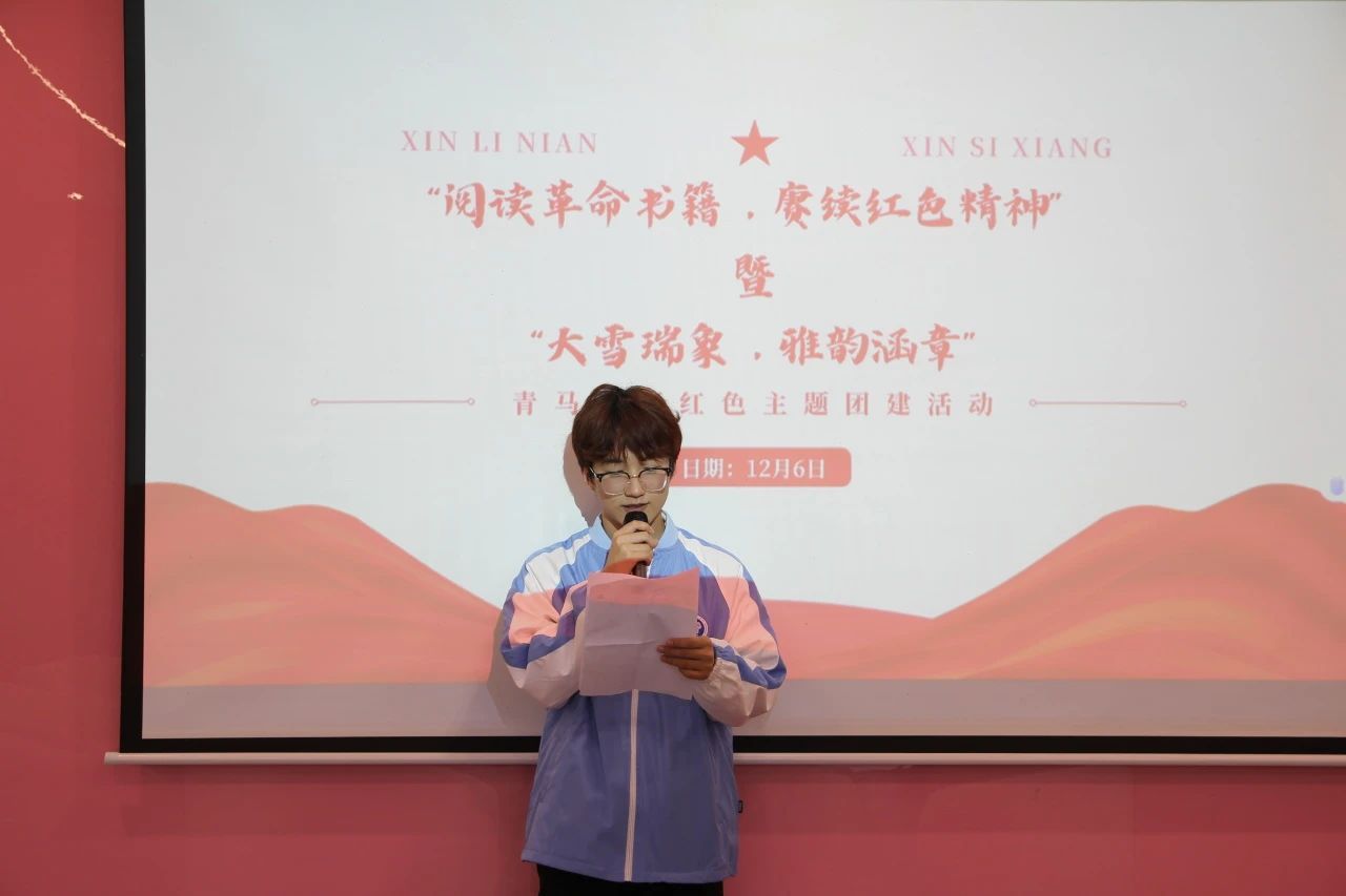 为深入贯彻落实习近平总书记关于红色阅读和传承红色基因的重要指示精神,通过引导青年学员品读红色经典,激发他们的爱国热情,培养青年马克思主义者的历史使命感和责任感,戏剧影视学院青马工程初阶3班于12月9日在丁山书院·天秤座功能室开展了以“阅读红色经典·传承革命精神”为主题的阅读分享班级活动。