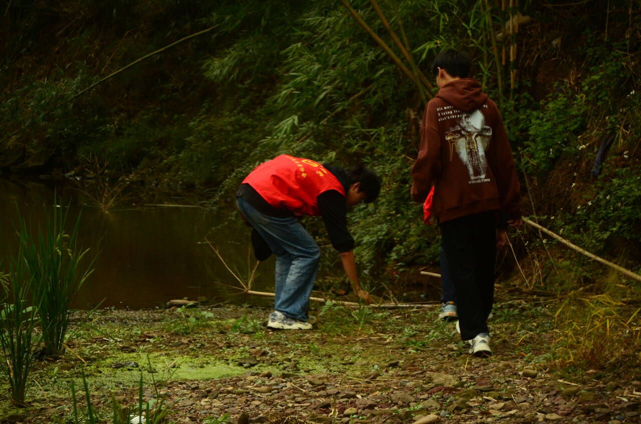 当日下午15时,班团队伍准时到达登灜小镇,在班导师罗依依的带领下前往小溪旁。简单讲解了注意事项后同学们就自行在周边进行垃圾清理,小溪旁日积月累散落的垃圾已影响了它原本的景色,在同学们齐心协力的清理下,小溪已初步恢复美观。同学们在清理过程中不仅明白了保护环境的意义还体会了团队协作的重要性。