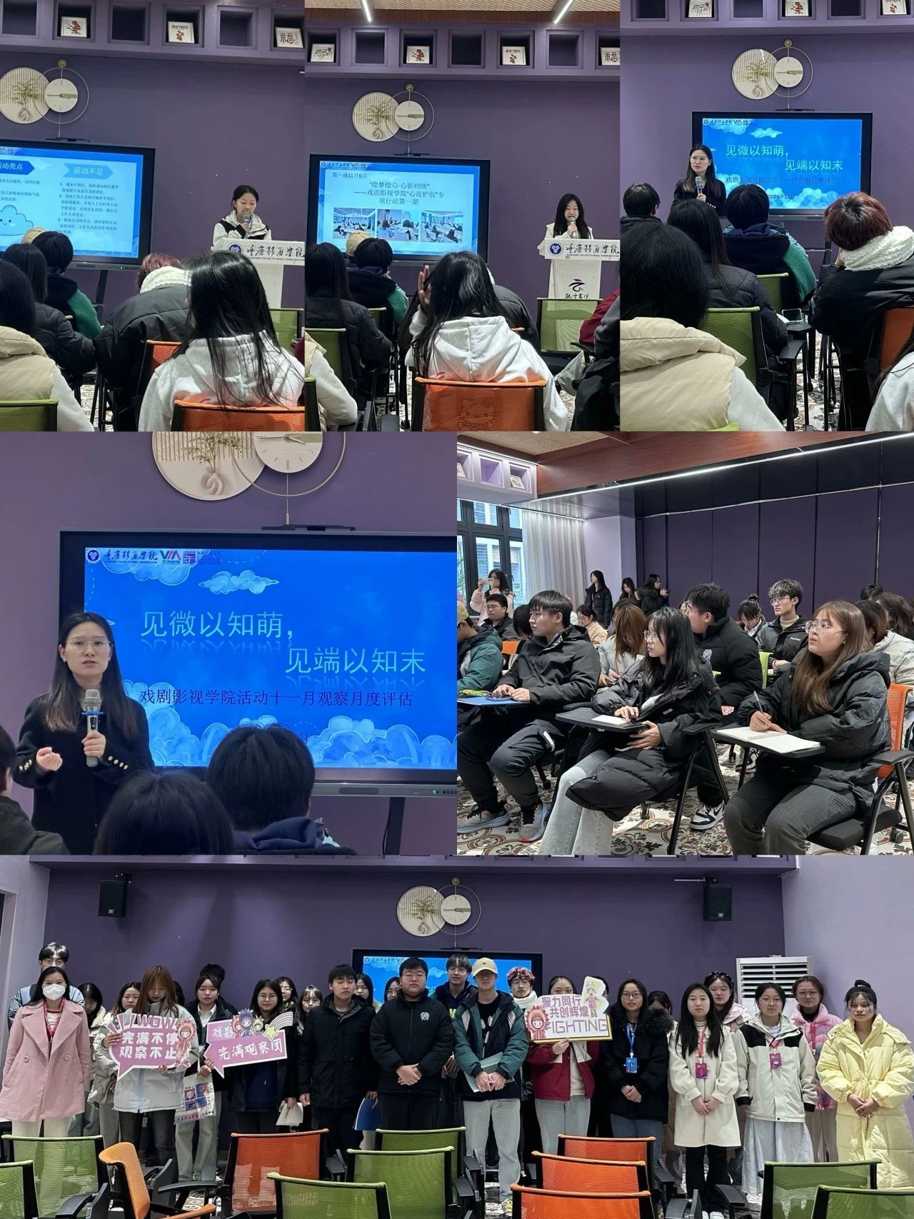 完满观察团,作为戏剧影视学院提升完满教育活动质量的关键力量,其核心在于促进完满教育体系的持续优化,确保活动满足师生需求,实现教育效果最大化。戏剧影视学院完满观察团秉持“细致入微,精益求精”的理念,围绕完满教育目标,积极投身观察、评估与反馈工作。10月至11月间,开展了一系列富有成效的活动观察探索,旨在通过客观公正的评价,全面审视并反馈活动成效,推动完满教育活动向品牌化、内涵化、规范化迈进。