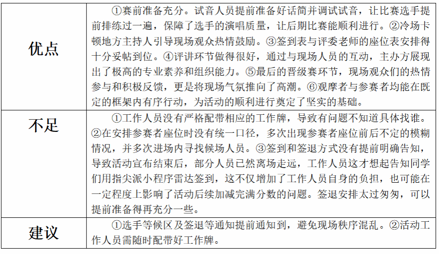 完满观察团在近期活动观察中,展现了高度的责任心与专业性。同时,各项完满活动主题鲜明,内容丰富,有效促进了学生的全面发展。如歌手大赛的激情演绎、MBTI交流局的思维碰撞等,均得到了学生的高度评价,体现了完满教育的独特魅力。