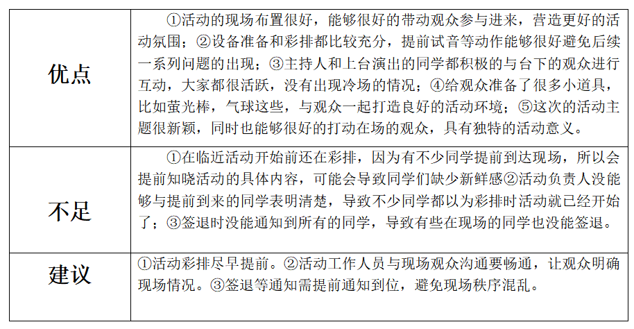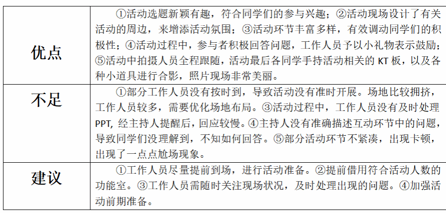 活动选题新颖有趣,活动环节丰富多样各工作人员也准备了小礼物送给的同学们。在同学积极回答问题的时候,同学们会积极鼓掌,积极反馈。整体来说活动体验还是很不错的。