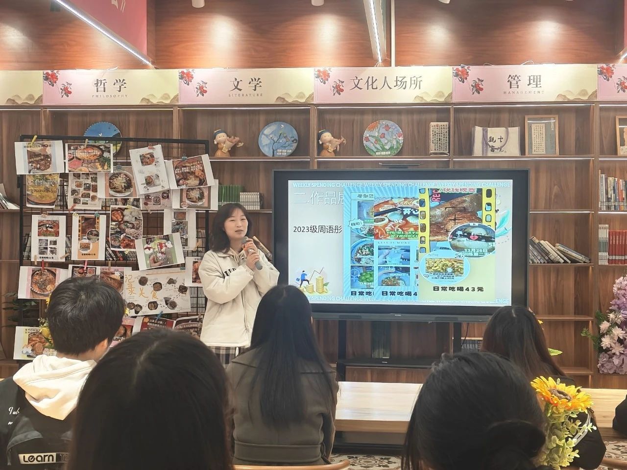 活动尾声,邓艳老师对本次活动进行了总结与点评,她高度赞扬了参与者的创意与热情,并表示此次活动不仅有助于培养同学们的节约意识,还能让大家在分享中发现更多生活中的美好。邓老师还给予了制作vlog的同学们一些宝贵的建议,鼓励他们继续发挥创意,用镜头记录生活的美好。同时邓老师还特别寄语大家,希望同学们结合专业知识,通过画笔、相机等方式记录生活,感受将生活费紧紧攥在手里,合理规划生活的消费习惯。
