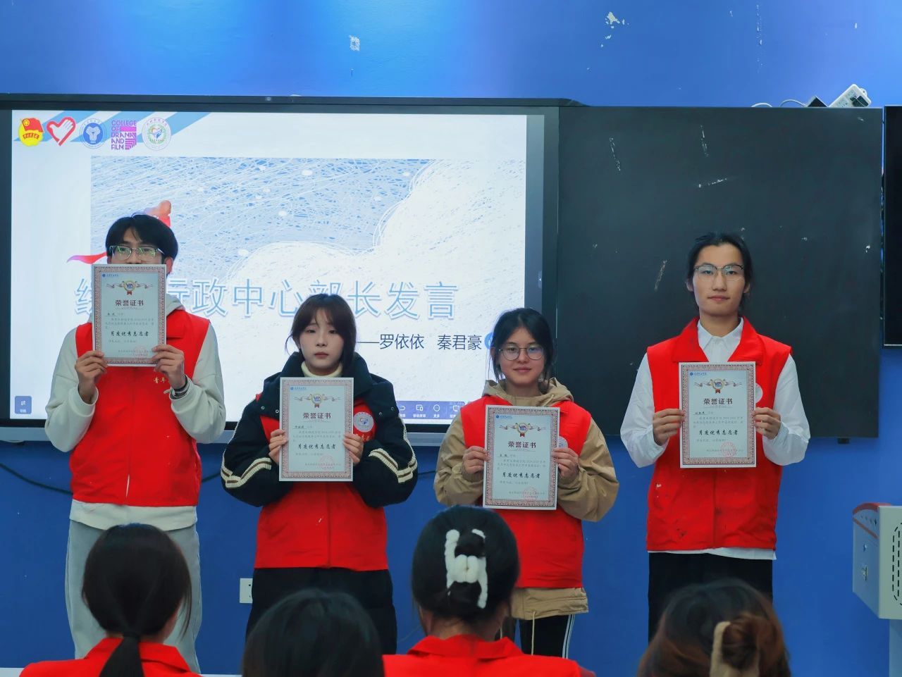 综合行政中心负责人秦君豪指出综合行政中心作为青年志愿者协会内部沟通的桥梁,应协调好各部门的工作安排,确保协会的各项规章制度得到有效执行。此外他还对九月表现突出的志愿者进行表彰,不仅肯定了他们的辛勤付出,也进一步激发了全体志愿者的服务热情和积极性。