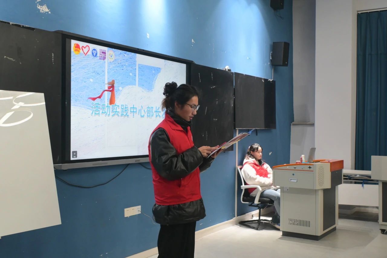 紧接着,青协主席张悦简单总结了11月的工作,结合各部门的汇报,规划12月任务的同时点明了优青标准,明确了接下来的目标。她还提出拓展志愿服务领域、打造精品项目的目标,必须要活动实践部丰富活动形式、宣传推广中心明确周报月报、综合行政中心夯实团队协作根基,项目孵化中心推进项目发展,为下学期的活动开展奠定基础。