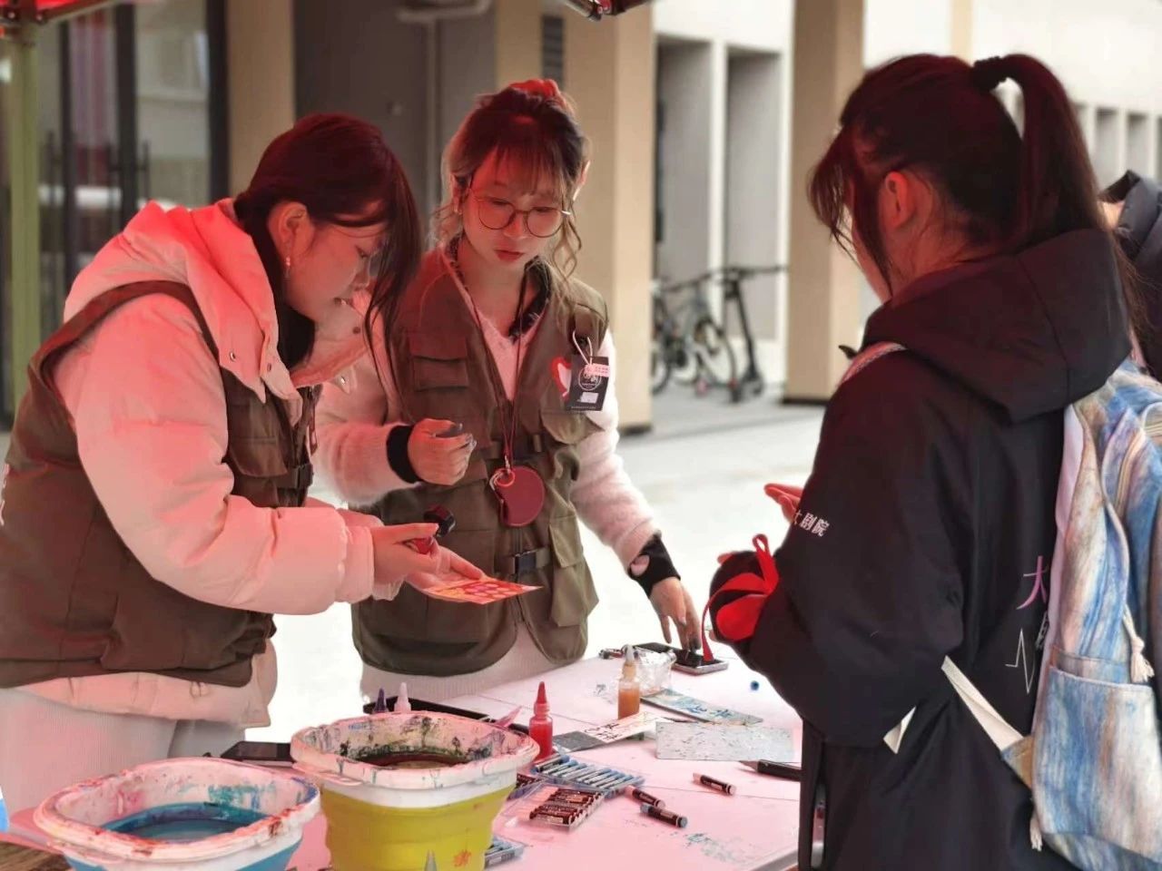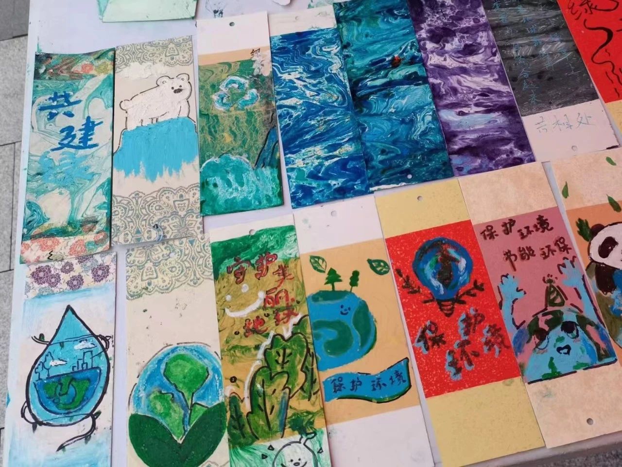 益术家支队的志愿者们通过制作漆绘书签的方式,在宣扬中华优秀传统文化的同时,为学生的文化生活增添一抹亮丽的色彩。志愿者向参与者详细介绍了漆画的基本技巧和操作步骤,参与者们认真的挑选喜欢的颜色,轻轻地将漂漆滴入水面,体验不同色彩之间的碰撞与融合。参与者还在书签上写下有关保护环境的寄语,最终化作一件件精美的艺术品。
