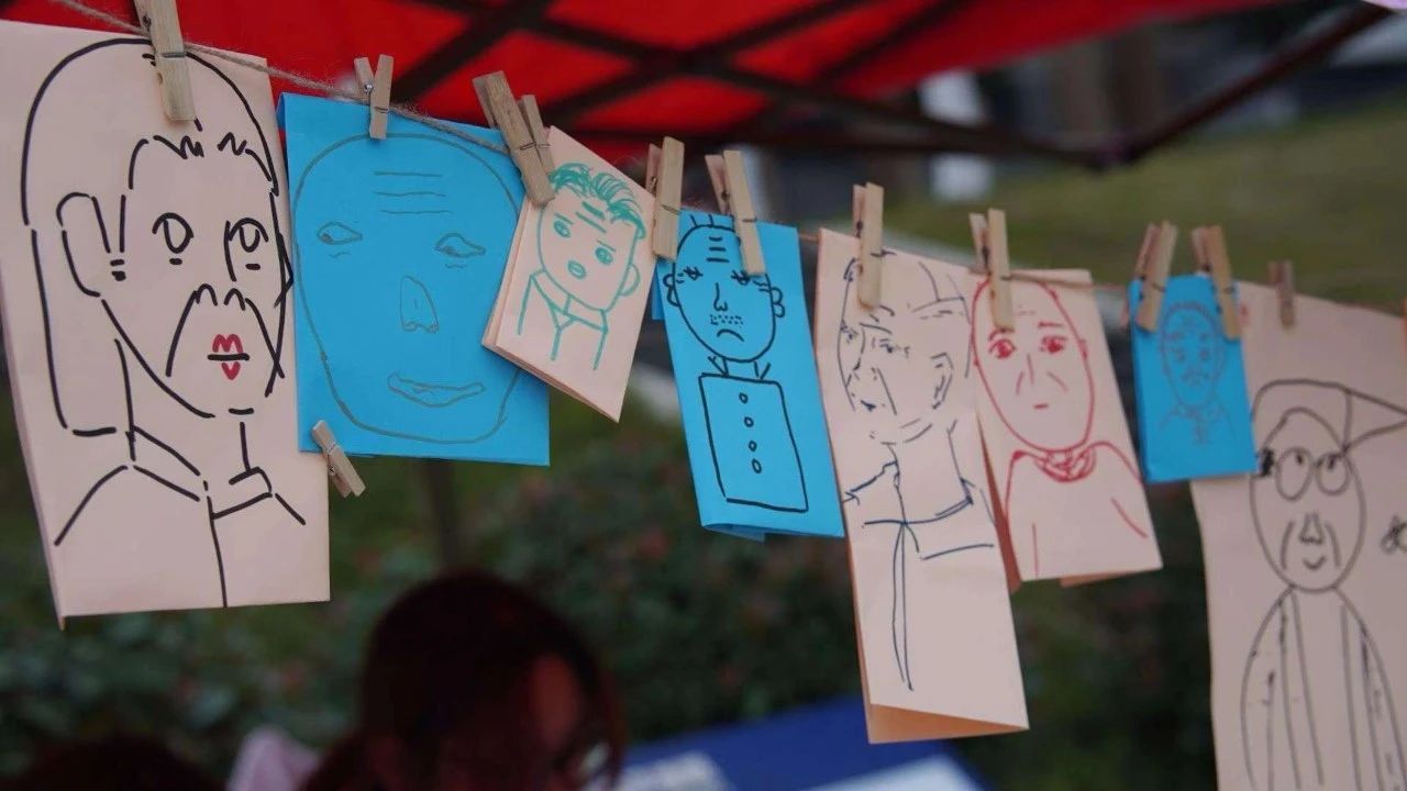 在微风广场上,画话夕阳支队根据支队专业特色在任务点设“小画家”志愿者。参与者根据裁判语言描述在画板上画出人物头像。由“小画家”志愿者根据参与者的绘画进行照片猜选,选出正确的照片,即为挑战成功。此项目不仅展示了画话夕阳平时在活动中的特色形式,更融合游戏展现了支队风采。