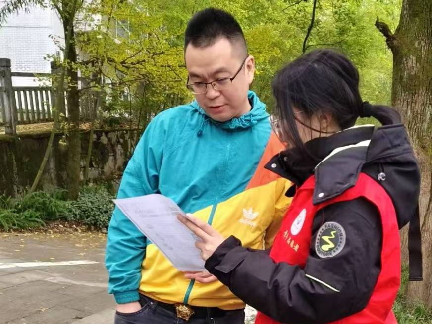 抵达古剑山后,24 级电影制作 1 班的同学们与景区工作人员一同开展了垃圾分类对于生态环保重要性的知识讲解,并通过提问环节,了解同学们的掌握情况强化他们的记忆。借宣传垃圾分类,助大家明晰不同垃圾类别属性,消除认知误区提升环保理论素养。