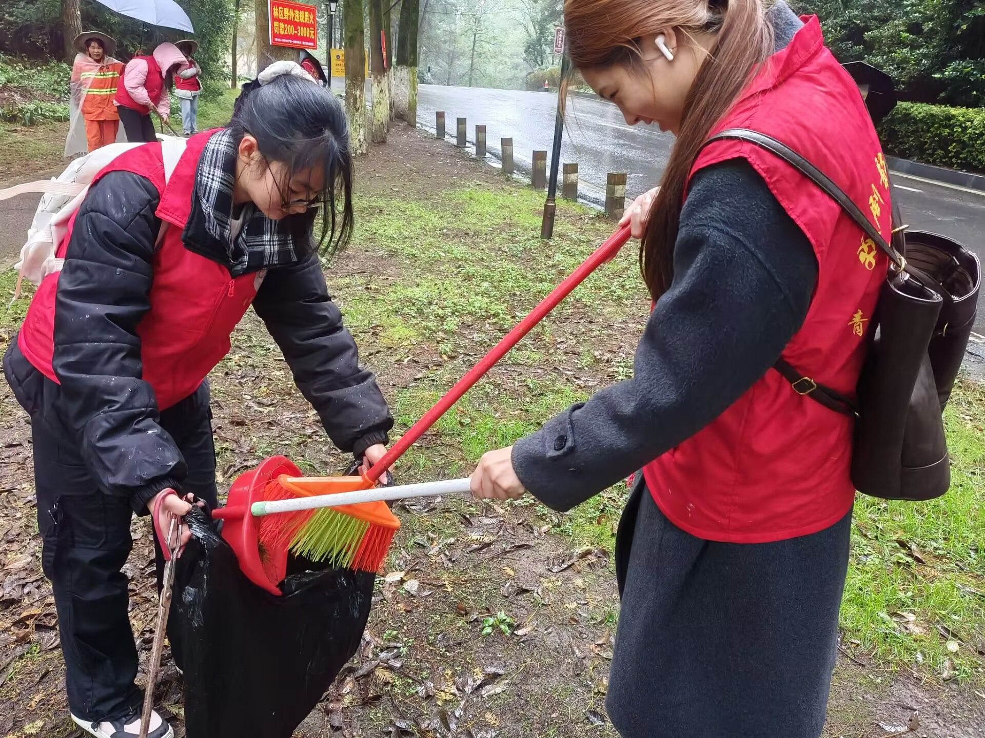 了解完基本的环保知识后,24 级电影制作 1 班的同学们便在景区工作人员的带领下进入景区,同学们手持扫把垃圾铲和钳子,满怀热情地跟着清洁人员一同投入到志愿工作中,仔细搜寻着游客留下的垃圾。草丛里的白色垃圾,角落里的烟头等都被一一清理出来看着被清理出来的各类垃圾,电影制作 1 班的每一位同学们洋溢着开心的笑容通过劳动换景区的洁净,心中都充满了成就感。