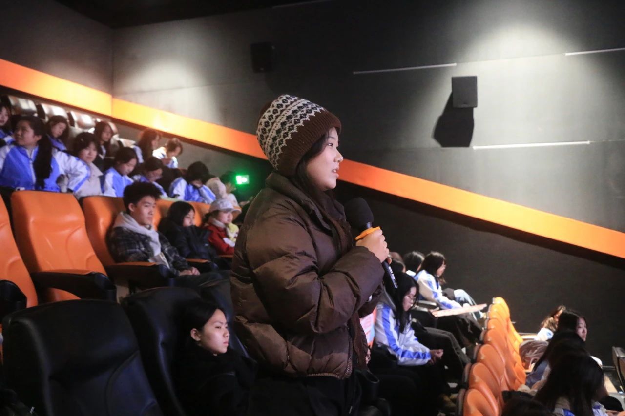 观影结束后,廖炳屹老师进行了深刻的观影总结,他强调,国家的和平与繁荣来之不易,应倍加珍惜,并号召同学们传承和弘扬志愿军精神,为实现民族复兴贡献力量。随后,同学们展开了热烈的交流,中共预备党员周龙琪、入党积极分子蔡永桐与青马初阶班成员许婉婷等,纷纷分享了自己的观影心得,他们的感悟真挚而深刻,进一步激发了同学们对志愿军精神的认同感与传承意识。