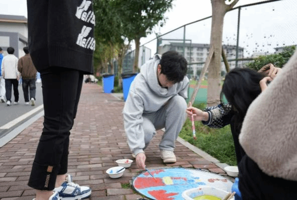 2024年11月20日,学院组织异科导师组成一支消防井盖涂鸦小分队,带领学生参与“井盖消防绘画”活动。活动在星池·游泳馆前的主干道上展开。此次活动邀请到学生处田猛老师、重点实验室的张焰琳老师、以及计算机学院异科导师学生处程荧老师与戏剧影视学院辅导员一同参加。异科导师们带领学生们构思方案、分工合作,在平平无奇的井盖上绘制出了一幅幅生动且具有消防教育意义的涂鸦作品。涂鸦内容涵盖了消防车、消防员、消防器材等多种元素。“消防设施别乱动,扑救火灾有大用”“消防安全,生命至上”等醒目的消防警示标语也一同展现出来。此次活动将井盖变“警盖”,进一步提升了师生的消防安全意识。