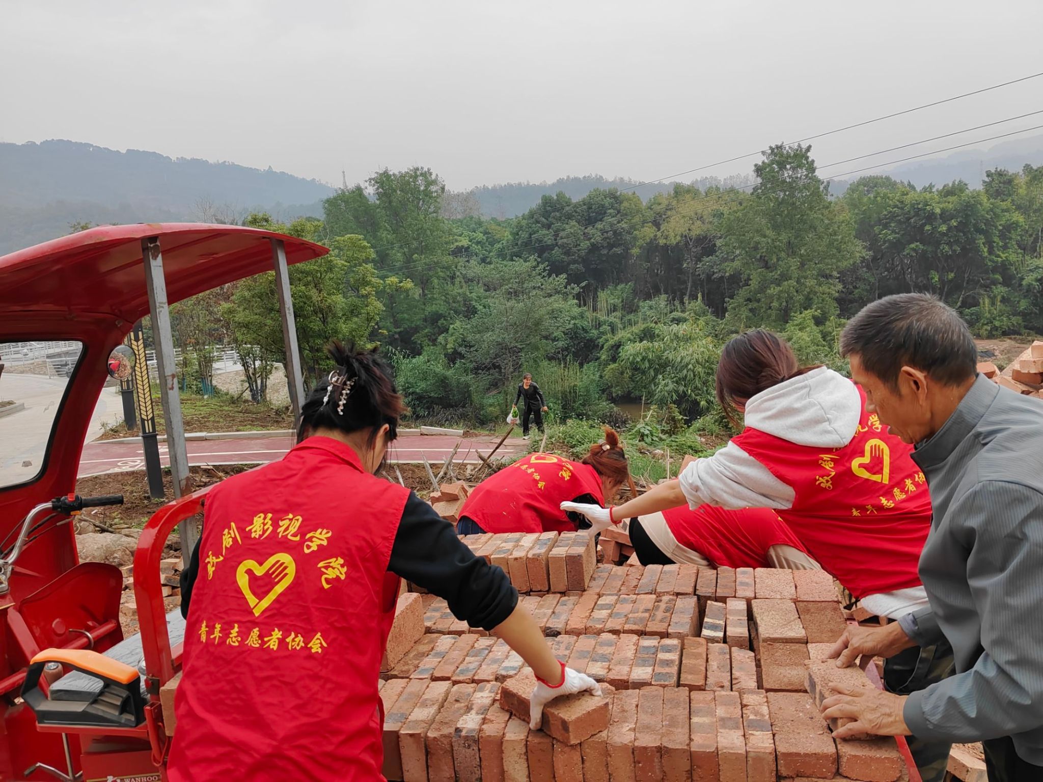 志愿者们迅速分组,拿起工具,有条不紊地开始清理工作,志愿者们利用铲子将石块撬起,再用桶装运碎石块到手推车里。男生们主动承担起运输的重任,他们小心翼翼地推着装满石块的手推车,沿着崎岖的小路,将石块运送到指定地点。另一边,志愿者们则将较大的砖头整齐地码放在农场的三轮车上,准备运送到其他地方进行再利用。