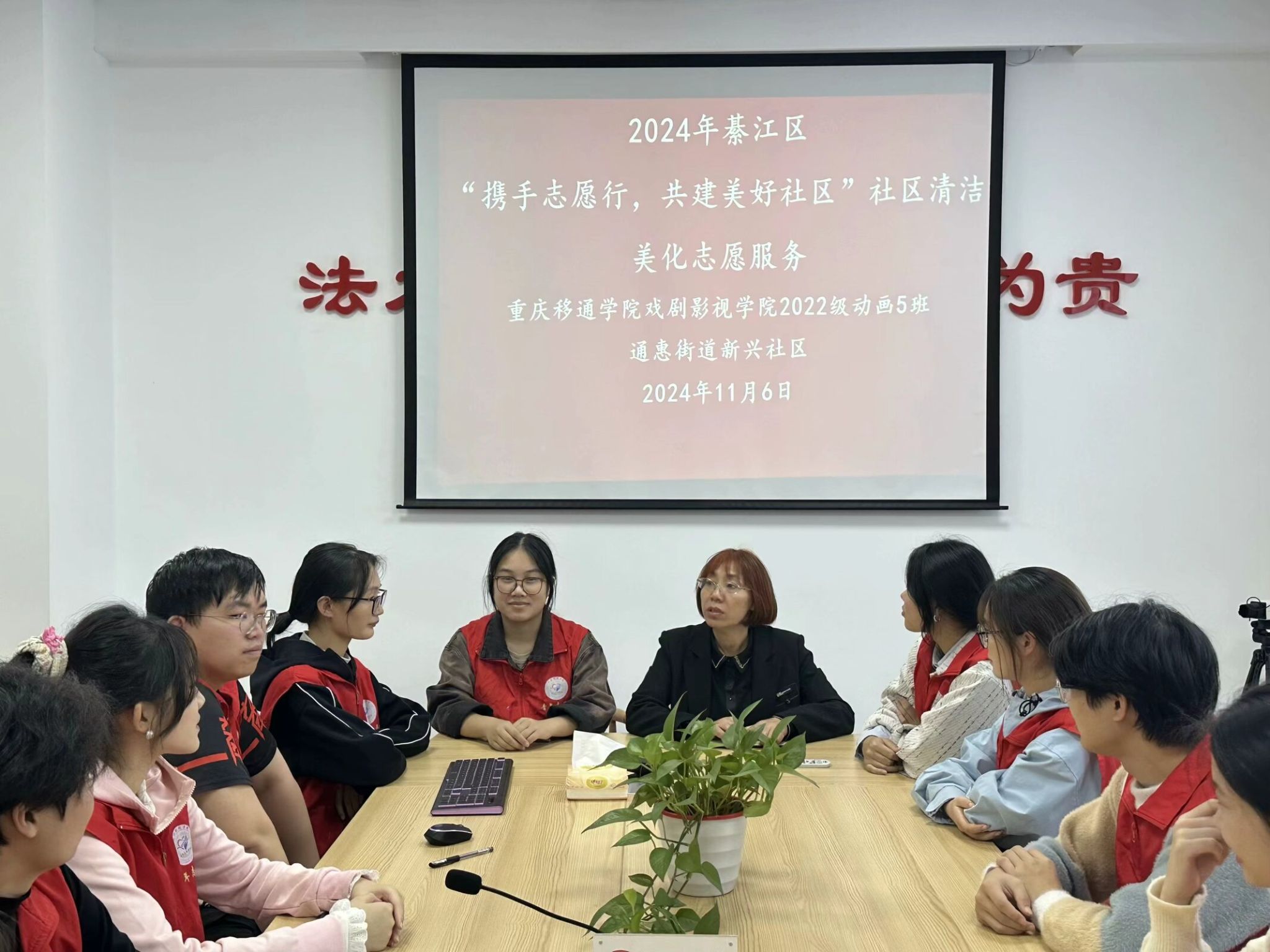 为提高大学生的社会责任感,增强同学们的实践能力和社会志愿服务意识,助力社区环境建设,推动社区健康可持续发展。戏剧影视学院2022级动画5班于2024年11月6日开展了一场以“携手志愿行·共筑美好社区”为主题的社区环境美化志愿服务活动。此次活动旨在为同学们搭建提供发挥才干、锻炼技能、服务社会的平台。让同学们在丰富社会实践经历的同时,在志愿服务中绽放青春的风采。