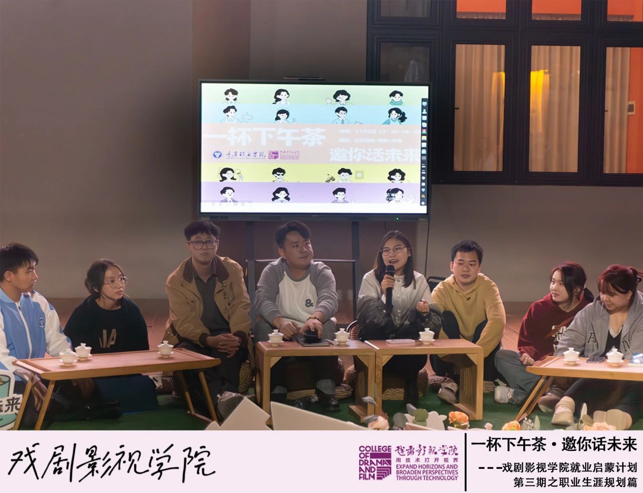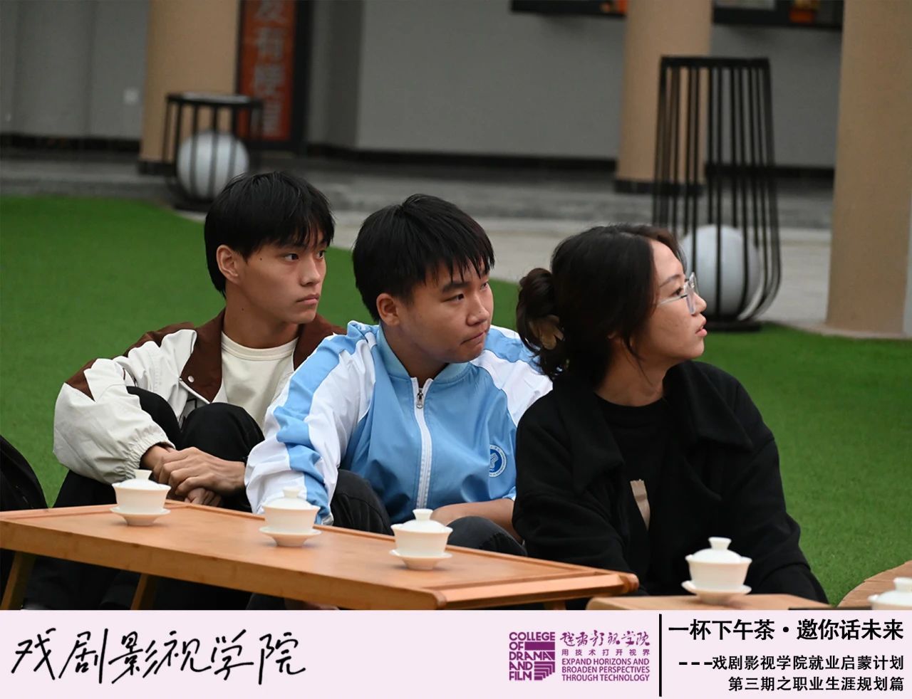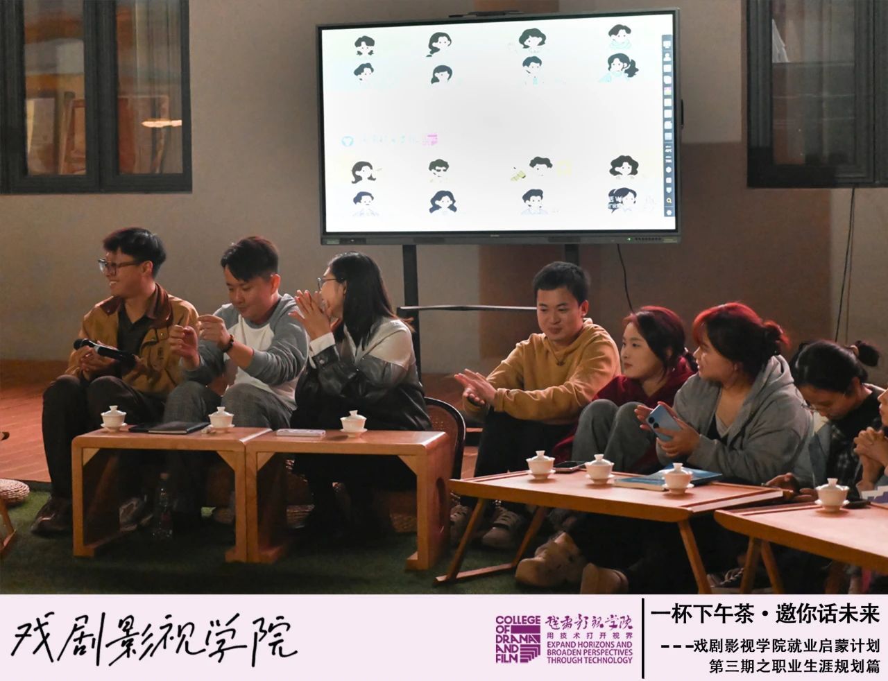 本次“一杯下午茶·邀你话未来”茶话会活动从下午拉开帷幕,茶水续一杯又一杯,同学们对未来的思考也越来越多、越来越实。随着夜幕降临,同学们带着满满的收获慢慢离场。戏剧影视学院就业启蒙计划于2022年开始启动,由学院就创老师与学校就创导师库成员共同组成茶话会主讲嘉宾,共话学子未来成长,帮助学生提早对未来进行规划,引导学生主动思考毕业去向,启蒙同学们的就业意识。两年来,活动备受学院学生关注和欢迎。未来,学院将持续精细化打造该计划,为戏娃的未来规划提供更多服务和指导。