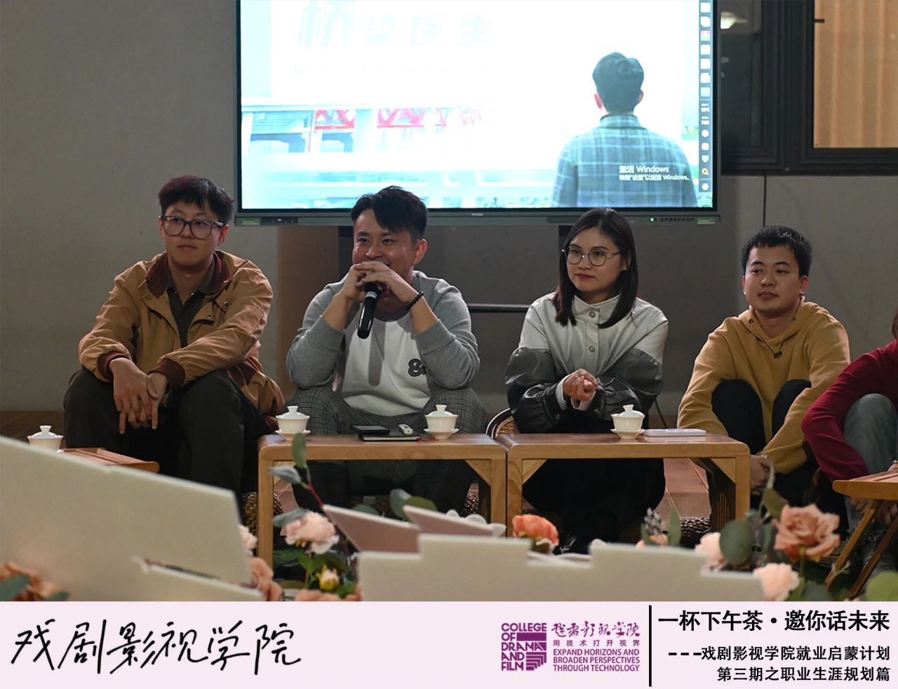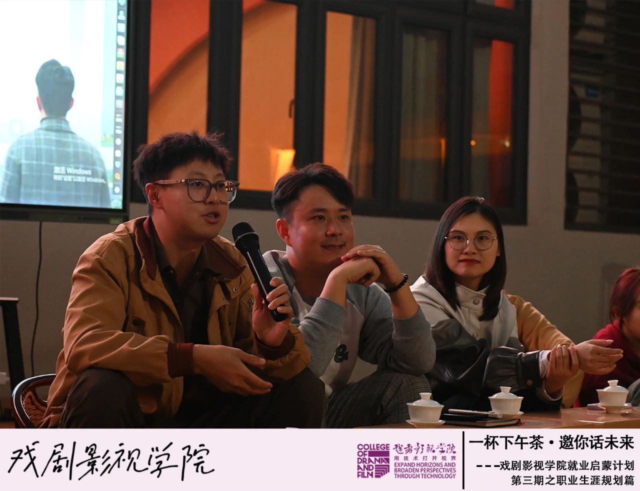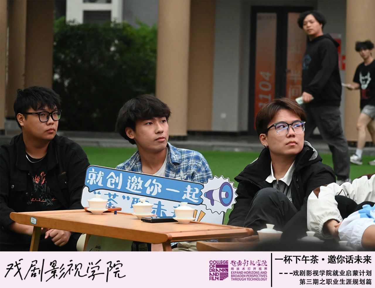 本次“一杯下午茶·邀你话未来”茶话会活动从下午拉开帷幕,茶水续一杯又一杯,同学们对未来的思考也越来越多、越来越实。随着夜幕降临,同学们带着满满的收获慢慢离场。戏剧影视学院就业启蒙计划于2022年开始启动,由学院就创老师与学校就创导师库成员共同组成茶话会主讲嘉宾,共话学子未来成长,帮助学生提早对未来进行规划,引导学生主动思考毕业去向,启蒙同学们的就业意识。两年来,活动备受学院学生关注和欢迎。未来,学院将持续精细化打造该计划,为戏娃的未来规划提供更多服务和指导。