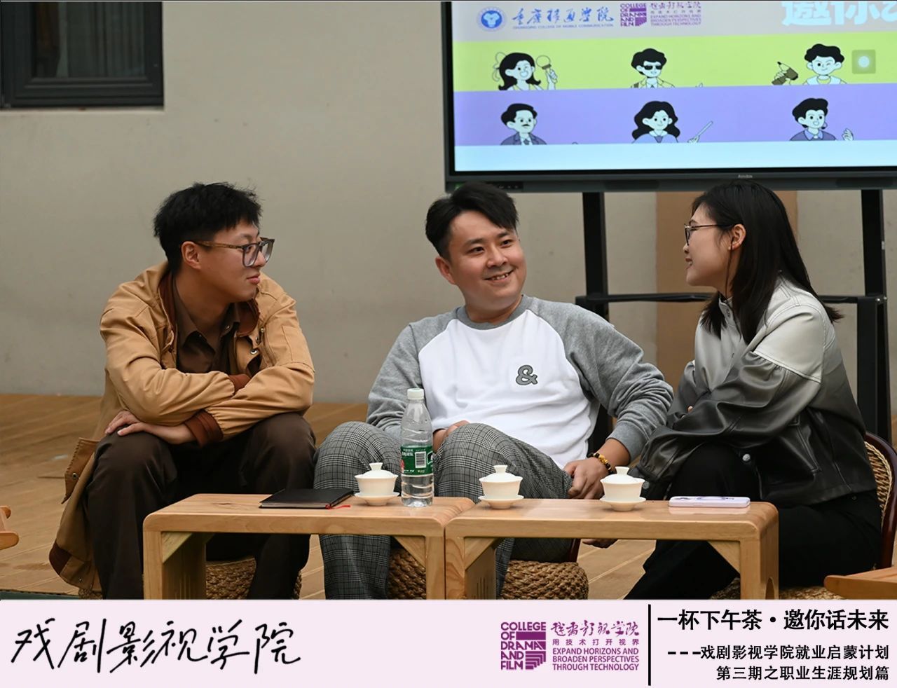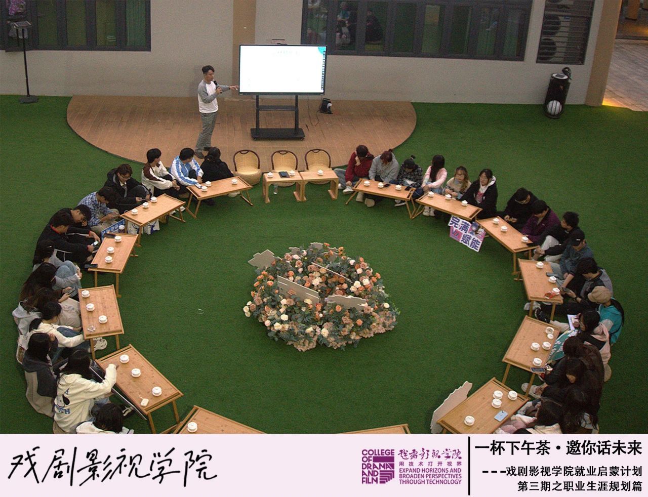 大学生活丰富美好又多彩绚丽,2024级新同学进校已有两个月,在体验大学全新生活方式的过程中,新鲜感褪去之后的迷茫感也接踵而来。为帮助戏影学子制定正确的学习规划,引导他们学会有意识地把握自己的人生方向,及早关注个人成长与发展,2024年11月6日,戏剧影视学院“一杯下午茶·邀你话未来”就业启蒙计划第3期在古剑书院得意·中庭成功举办,本次活动荣幸邀请到了重庆移通学院就创导师库导师、全国首届职业生涯规划大赛铜奖得主罗德康、戏剧影视学院学工办主任曾玉娇、辅导员廖炳屹3位老师,戏影就创助理团携手50名新生戏娃围坐一堂,共话未来。