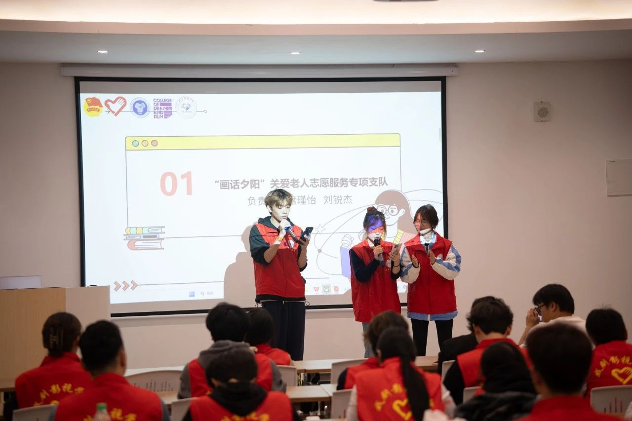 在这个秋意渐浓的美好时节,为了迎接新成员的加入,帮助他们更好地了解和融入支队,促进新老成员之间的交流与融合。戏剧影视学院志愿支队于2024年10月30日在南江书院审问·启迪思维学堂开展支队新生见面会。本次会议由“画话夕阳”支队长刘锐杰主持,见面会出席的嘉宾有戏剧影视学院团总支书记邓艳老师和戏剧影视学院志愿者服务板块指导老师李梦雪老师。