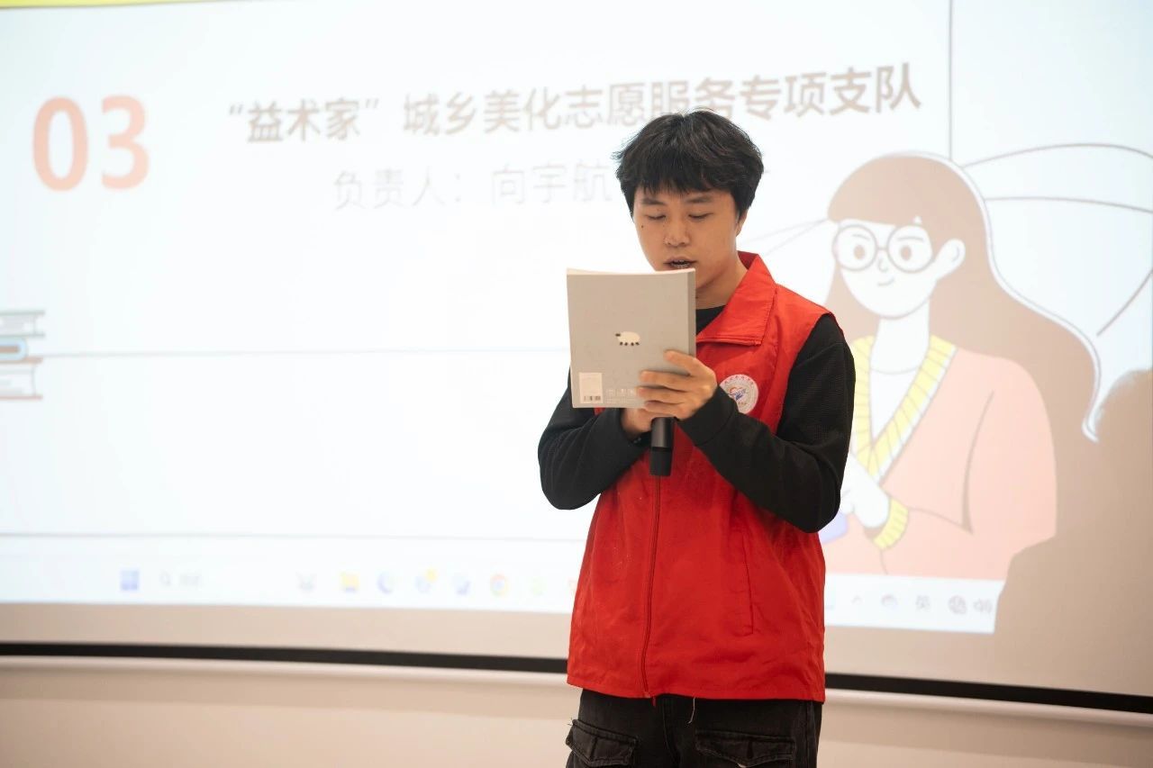 主持人刘锐杰首先代表支队全体成员对新成员的加入表示热烈欢迎,并言简意赅的对志愿支队进行了一个简单阐述,帮助新加入的志愿者们对支队有了进一步的了解。紧接着各支队负责人上台进行自我介绍,并对各自支队的服务对象和工作概况进行了详细的讲解。向新成员们展示支队以往举办过的活动和自身在志愿服务中的经历和感悟,他们鼓励新加入的支队成员们积极参加志愿服务活动,在一次次的实践中锻炼自己,为志愿事业添砖加瓦。