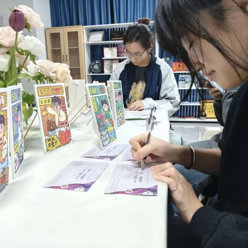 MBTI是时下最火的一种人格类型理论模型,作为新型社交密码,也成了现代年轻人交友的新方式,为加快打造戏迷朋辈交流社交空间,不断增强戏娃们的获得感,幸福感和归属感,营造轻松愉快的社交朋辈氛围,2024年10月16日,戏剧影视学院社团实践部于古剑书院的白虹·半间闲室成功开展“e来i去就熟啦!——MBTI社团青年交流局”。旨在扩大戏娃社交朋友圈,搭建朋辈互动空间,增强自身沟通理解能力。