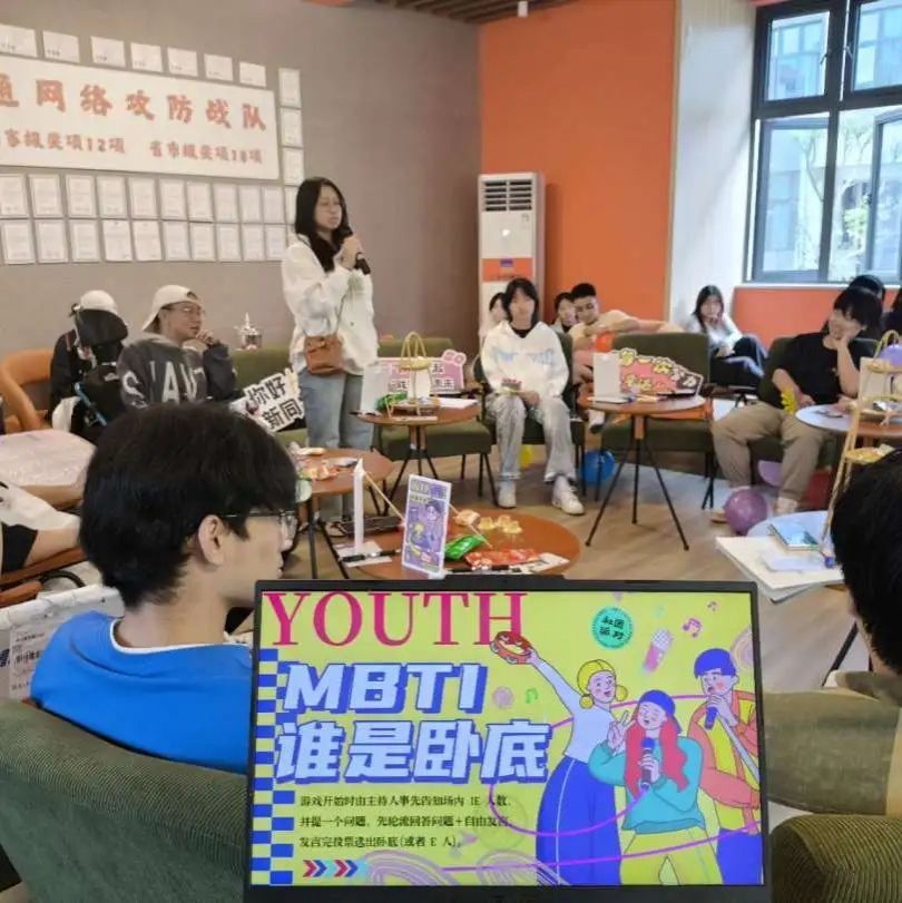 揭秘MBTI性格的奥秘:参与者们在现场进行了MBTI测试。通过测试,大家对自己的性格类型、内心深处的潜能和特点有了更深入的了解。性格与策略的较量:“谁是卧底”。大家轮流发言回答主持人提问,参与者们化身侦探,通过细致的观察和锐利的直觉去揭示隐藏在e人群体中的i人性格与观点的碰撞:“你认为MBTI人格属性是一种标签吗?”“MBTI是娱乐还是封建迷信?”“当个i人更好还是e人会更好?”等一系列问题的讨论会拉开帷幕。参与者们各抒己见,说出自己的看法,并巧妙运用自己的性格偏好进行反驳或支持其他同学的想法。