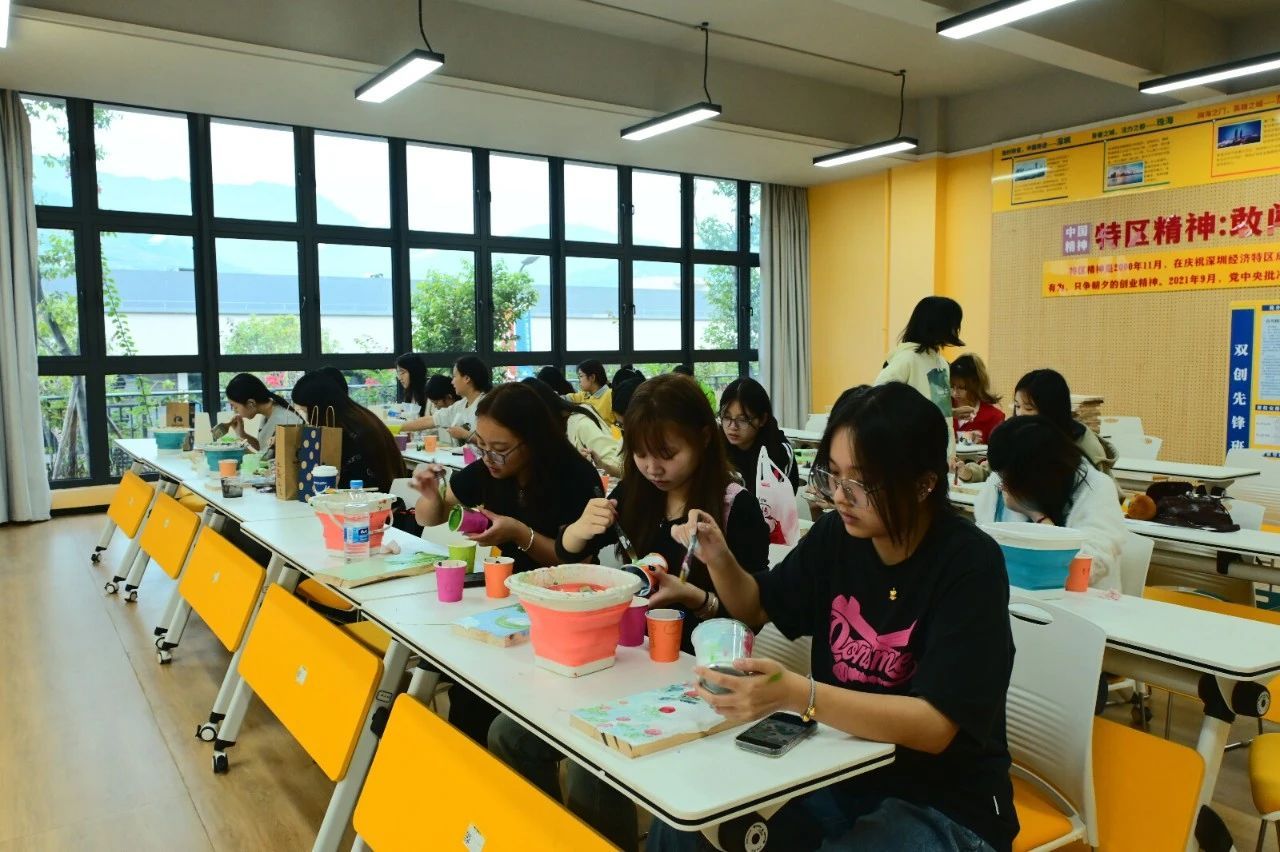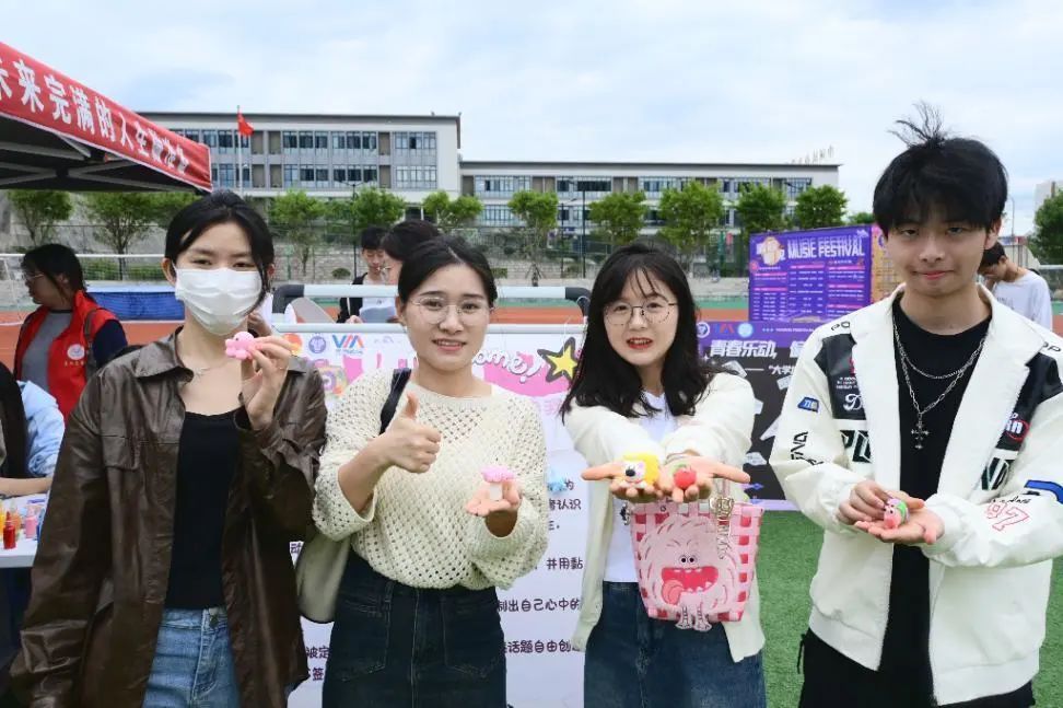2024年10月19日至20日的下午,戏影青协益术家城乡美化专项支队在古剑山音乐节外围现场组织了一场趣味横生的彩绘DIY活动,面向重庆移通学院全体师生。参与者在志愿者们的帮助下,接触油画棒绘画技法。先使用铅笔初步定形,再用勾线笔勾勒细节,最后用油画棒增添丰富的色彩与纹理质感。在整个创作过程中,有的参与者按图临摹,有的则自由构思创作。经过不断地尝试和调整,一幅幅创意满满、各具特色、充满艺术感的肌理画作品应运而生。通过肌理画的色彩斑斓、书签制作的匠心独运、黏土变形记等无限创意,每一位参与者都有机会亲手揭开自我认知的新篇章,于方寸之间展现真我风采,共同绘制一幅消除偏见、拥抱多元的美丽画卷。本次活动充分结合我院专业特色,不仅让同学们感受了戏影浓厚的艺术文化氛围,更通过不同的形式,鼓励学生们为自己的作品涂抹上喜欢的色彩,展现出了大学生独特的个性和创意。