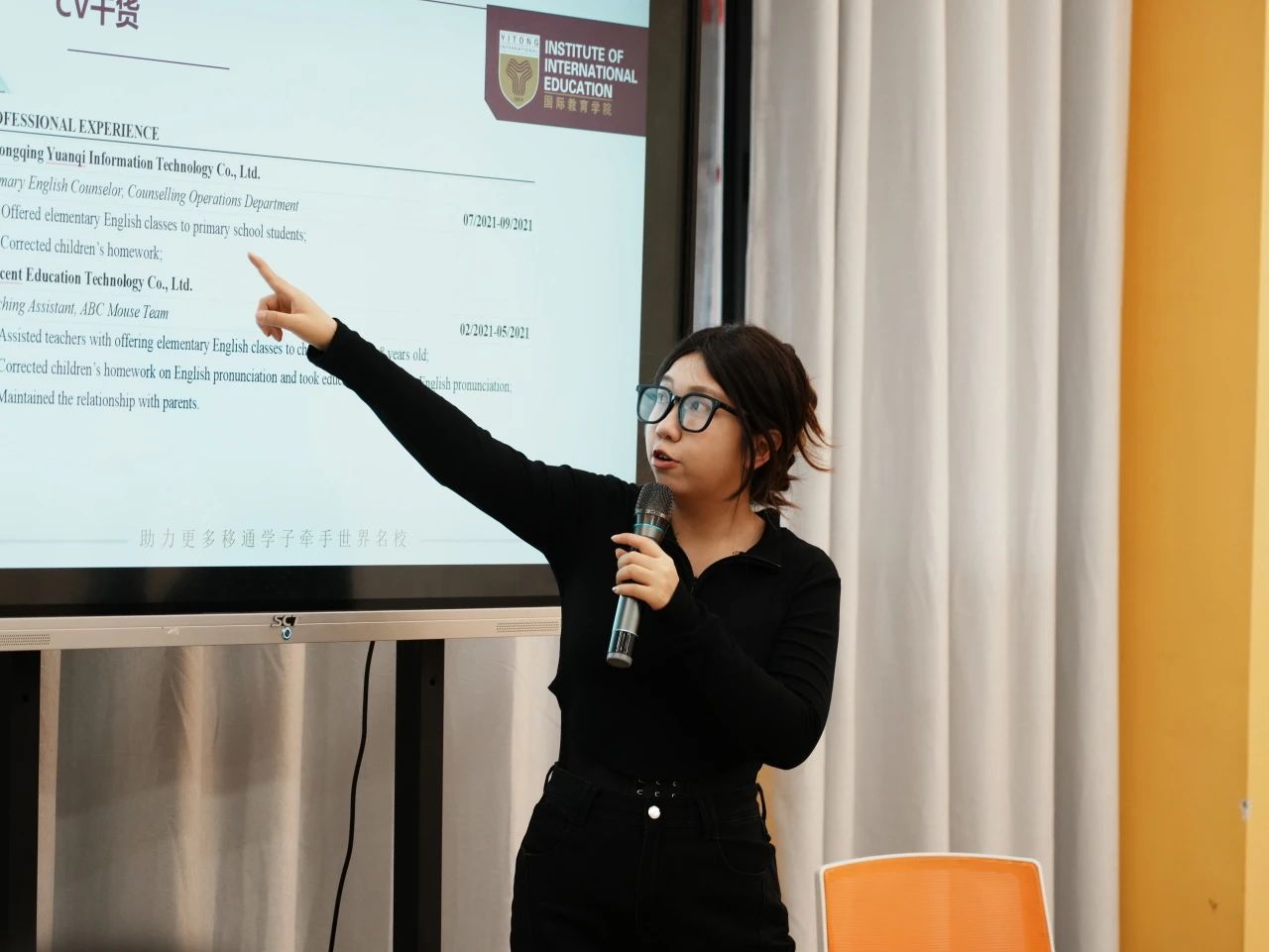 10月16日,戏剧影视学院影翼就创助理团通过邀请具有丰富留学经历的校友——重庆移通学院的优秀校友潘彦含学姐分享留学经验,为戏剧影视学院的学生提供一个了解留学生活和经验的机会,活动旨在提供实用的留学指导,帮助在校学生更好地规划留学路径,提升留学申请的成功率;同时,通过分享留学经历,激发更多学生的留学热情,为学院培养具有国际视野和创新能力的高素质人才贡献力量。活动通过校友的亲身经历分享,为在校学生提供了宝贵的留学经验以及留学规划指导,有助于他们明确目标,提升自我,为未来的艺术生涯打下坚实基础。