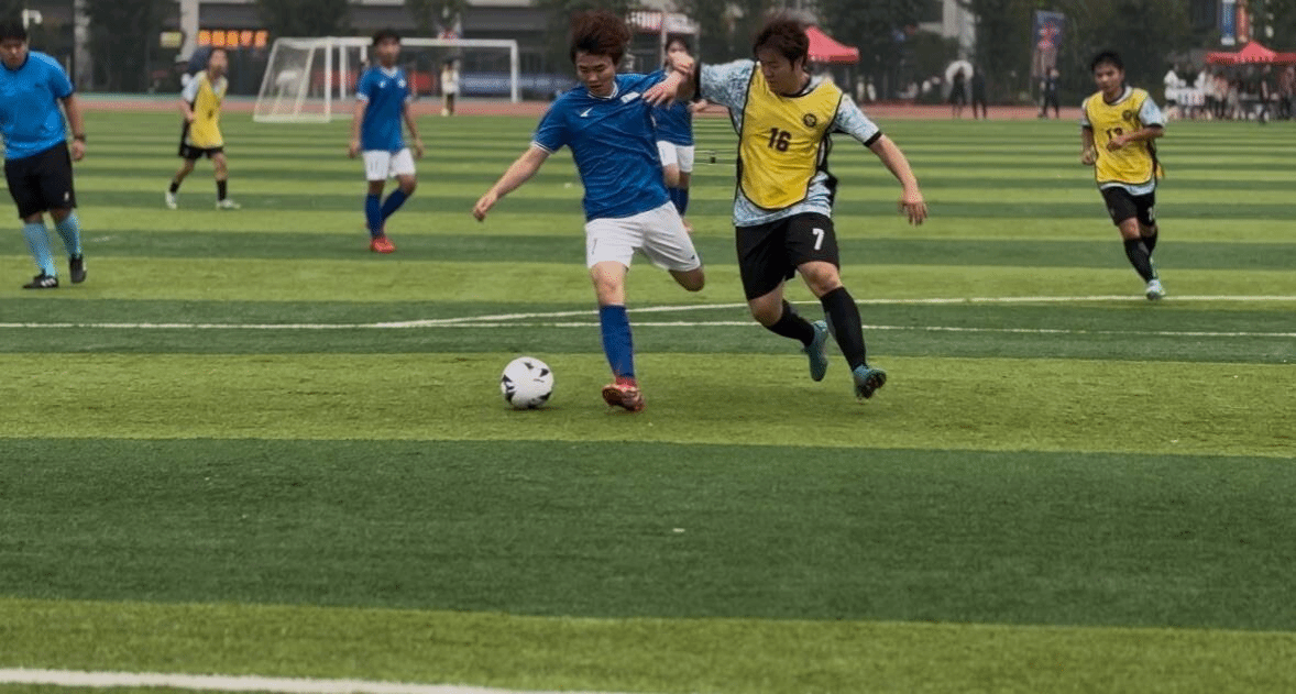 10月23日,戏影队迎来了与大健康管理学院足球队的精彩对决。戏影队开场落后两分,但戏影的球员们毫无惧色,他们如同矫健的猎豹在绿茵场上奋力奔跑,每一滴挥洒的汗水都折射出他们对胜利的渴望。然而,大健康队也不甘示弱,他们顽强抵抗,抓住每一个机会进行反击。比赛逐渐进入白热化阶段,4:4、4:5、5:5戏影队逐渐将比分扳平!可惜最终还是以5:6的微小差距遗憾落败。虽有遗憾但因第二场极小的比分差距,戏影男足以积三分、净胜球1的极大优势,提前锁定胜局,完美出线!