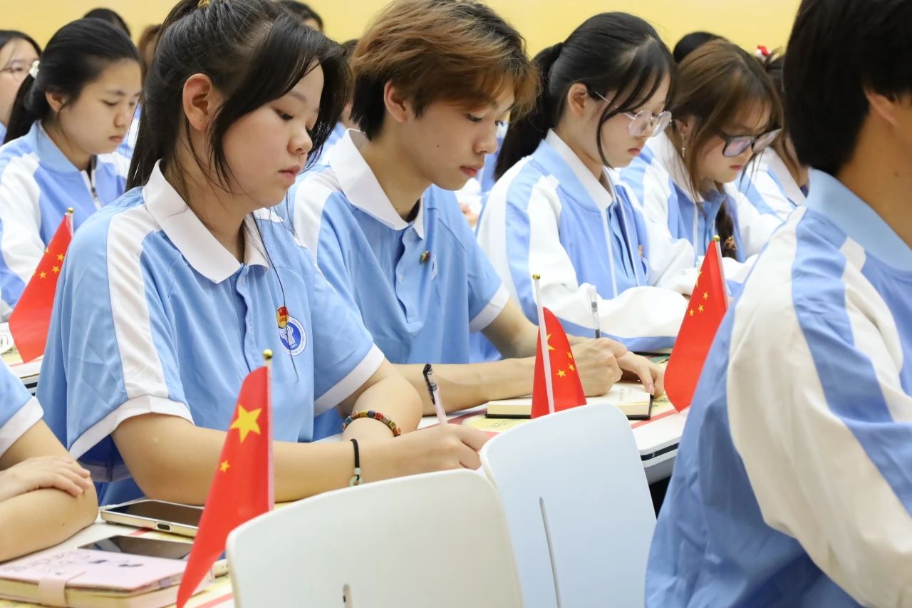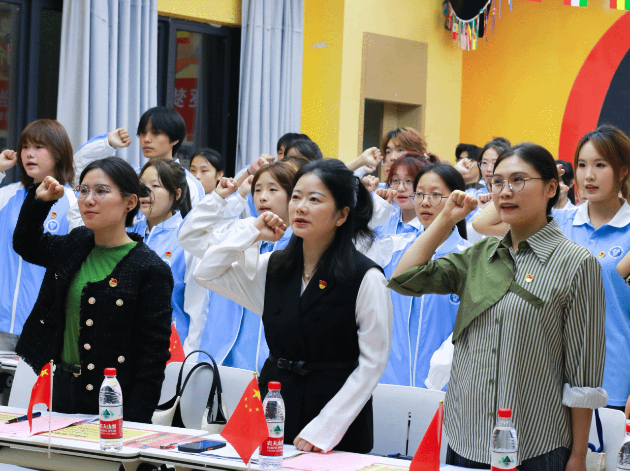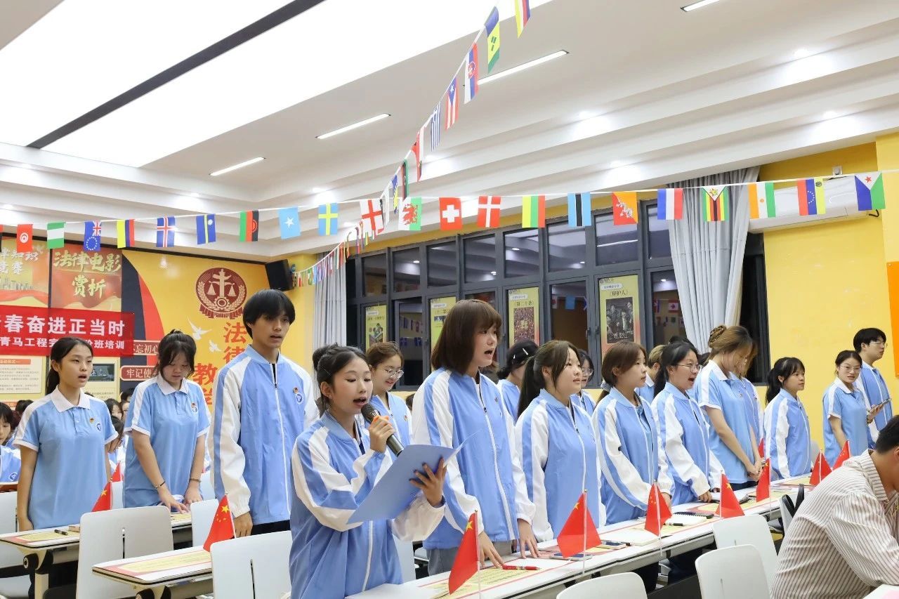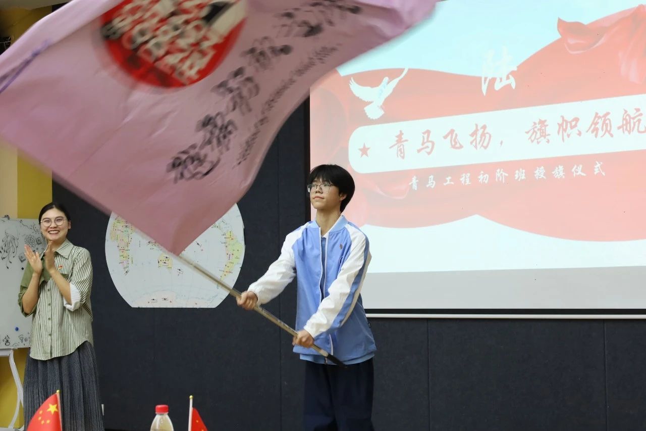 在庄重而温馨的氛围中,学工办主任曾玉娇老师与青马工程初阶班学员杨浩同学共同完成了青马工程初阶班授旗仪式的辉煌时刻。杨浩同学作为本届青马初阶班学员的代表,他以严肃的姿态接过了那面承载着历史使命与责任的旗帜,象征着青马精神的“接力棒”在新一代学员手中薪火相传,勇敢地担起了引领同侪、继往开来的重任。在此激动人心的时刻,青马工程初阶班学员宇升霞同学带领全体学员,庄严宣誓。那铿锵有力的誓言,传递出学员们坚定的信念、积极的态度和全力以赴的精神风貌。