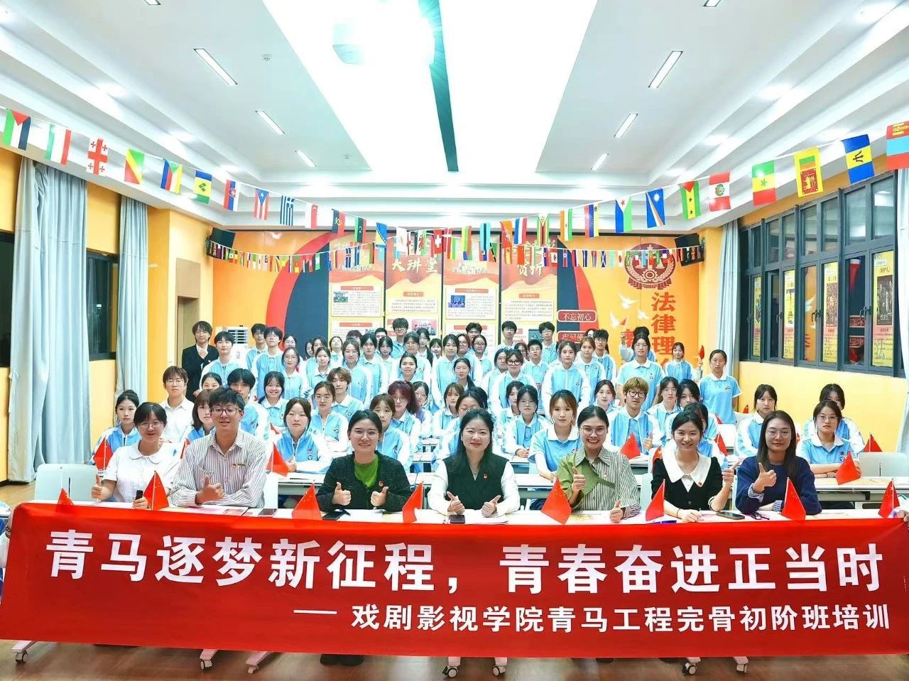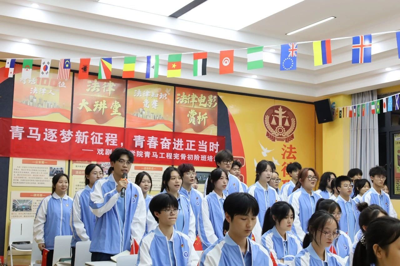 随着悠扬而庄重的音乐响起,戏剧影视学院第三届青马工程培训班的开班仪式正式拉开帷幕。在这一历史性的时刻,全体参会人员齐声奏唱团歌《光荣啊,中国共青团》,歌声回荡在回声报告厅的每一个角落,传递着青春的力量与信念。随后,学院学工办主任、学生党支部书记曾玉娇老师宣读了本次培训班的学员名单及分班情况,并对初阶班的各位学员寄予了深切的期望,激励着每一位同学在未来的日子里,要勇于担当、敢于创新,用自己的实际行动去践行青春誓言。