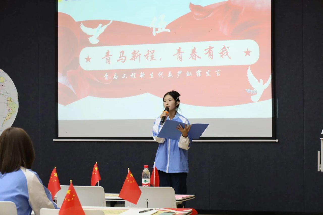 本届青马工程初阶班代表2024级电影制作专业新生尹虹霞同学激情昂扬地表达了自己对加入青马工程初阶班的期待和憧憬。她详细阐述了青马工程初阶班对个人成长的积极影响,呼吁全体新学员在青马工程的平台上勤奋学习,不断进取。