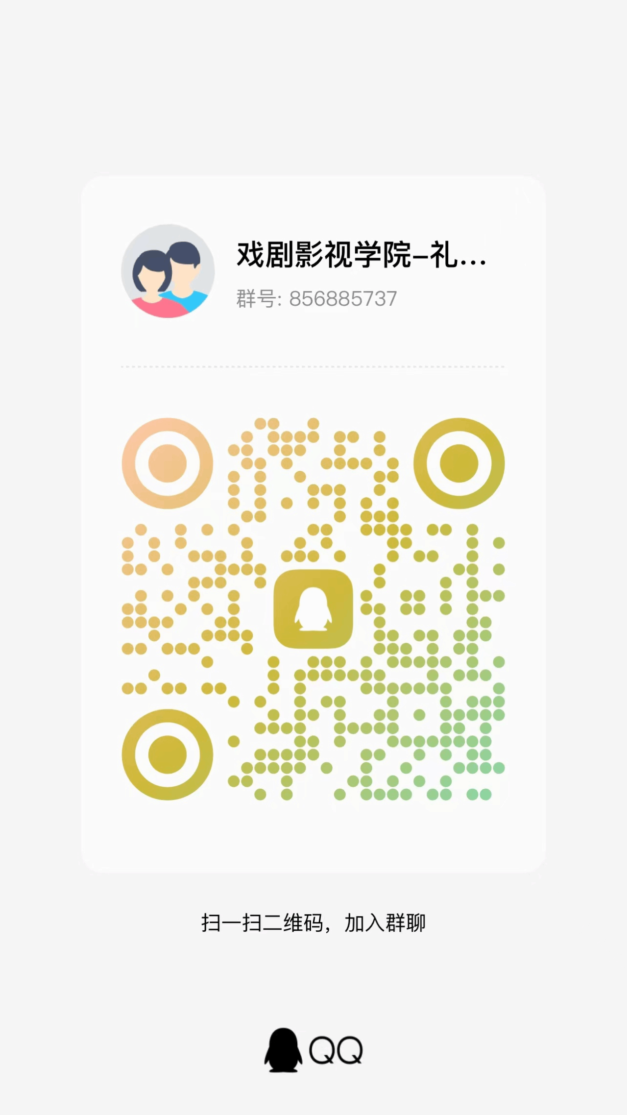 如果你对戏剧影视学院礼仪支队感兴趣,或者有任何疑问和困惑,请扫描下方二维码加入我们的官方招新QQ群进行了解!