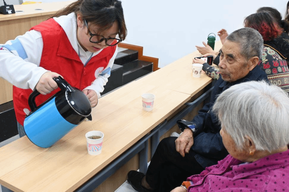 活动还未开始,志愿者们便提前到达了活动地点,开始了紧张而有序的场地布置工作。他们分工明确,确保每一个细节都尽善尽美。与此同时,为了能让现场的老人们感受到家的温暖,志愿者们还特别准备了热腾腾的茶水,并逐一为他们送上这份关怀。