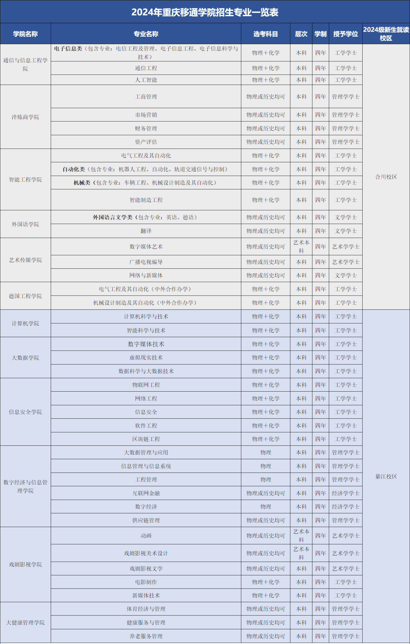 ★重庆移通学院2024招生专业及学费标准