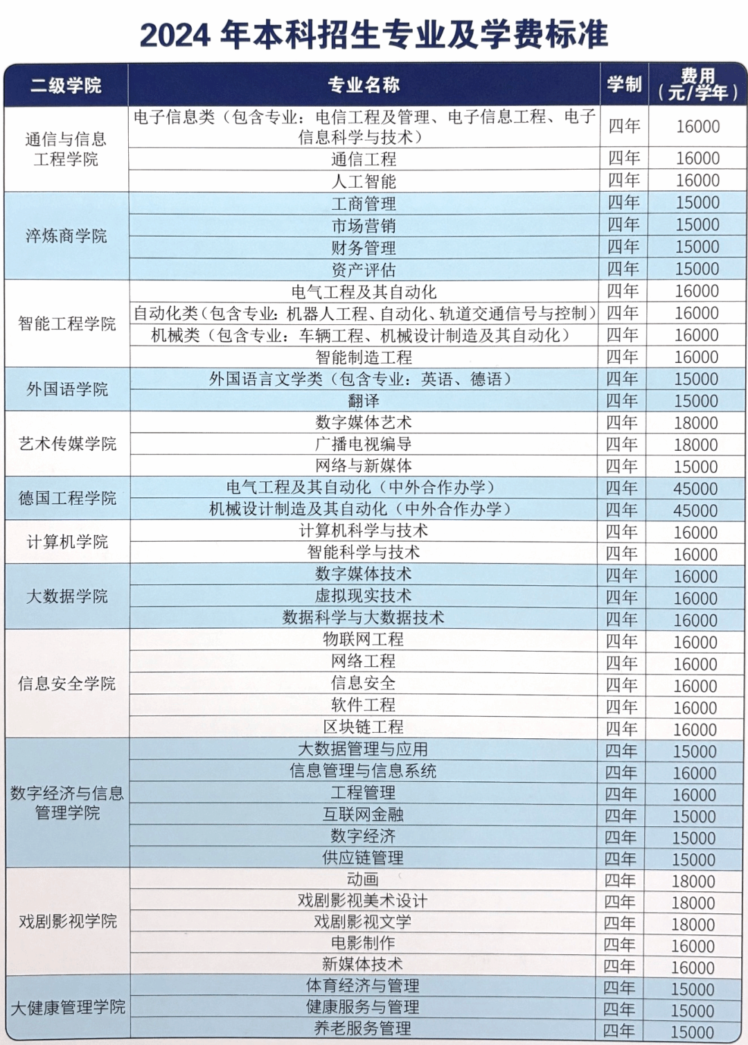 以下是2024年本科专业收费标准,学费为一年一交。