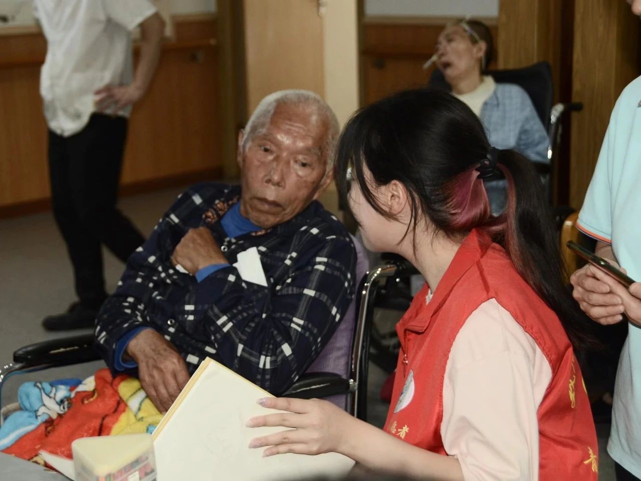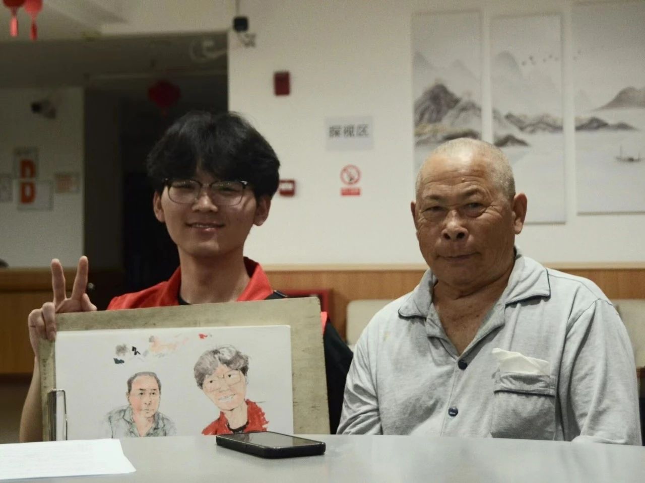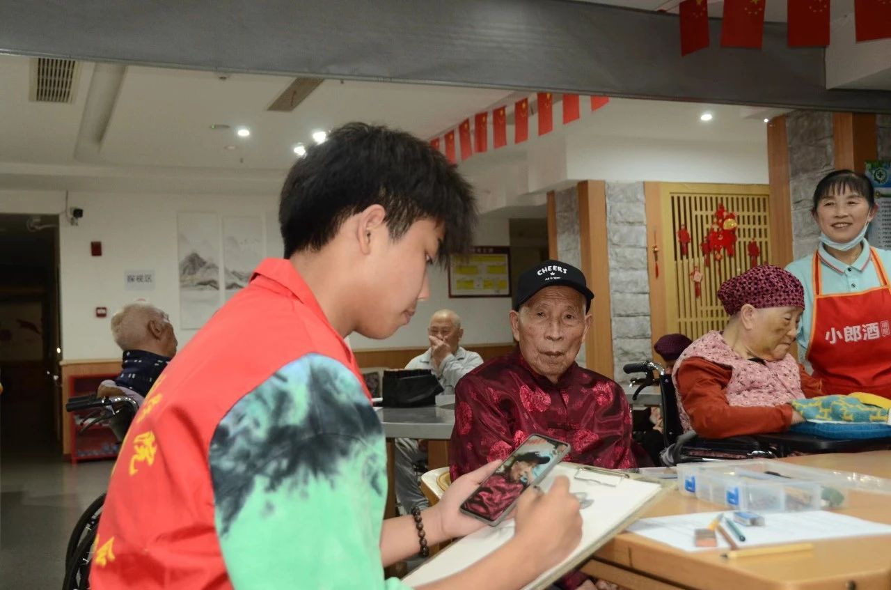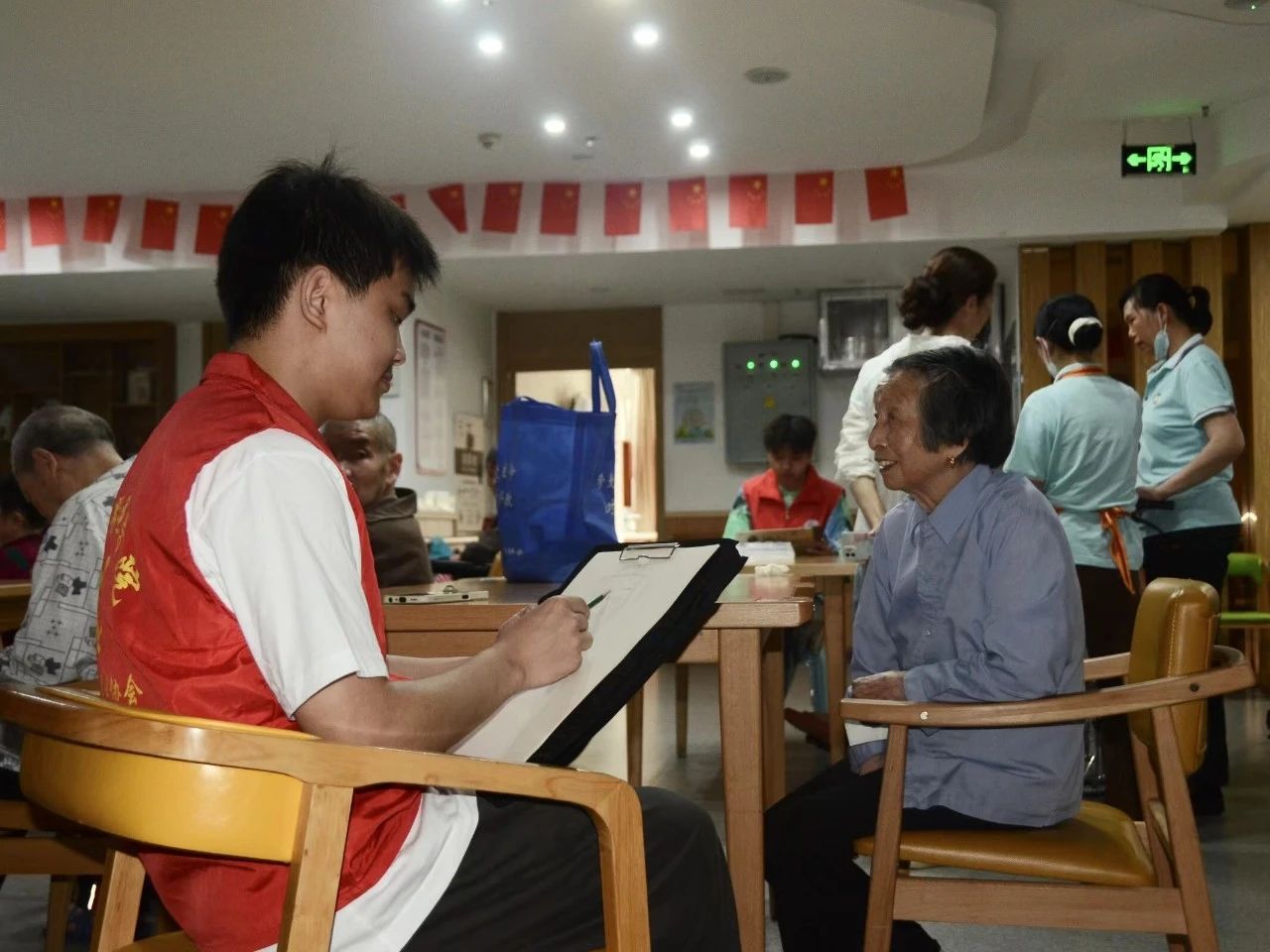 在画像的过程中,大学生志愿者们不仅展现了高超的画技,更是用自己的话语和行动,给老人们带去了温暖和关怀。他们模仿老人的口吻,与老人们交流生活中的点点滴滴,让老人们感受到了年轻人的活力和朝气他们在与老人们的交谈中,也知道了不少老人的小偏好,有的想吃辣,希望养老院的伙食里,能多麻多辣;有的喜欢唱歌,随时随地都能唱起来;还有的老奶奶喜欢看电视,爱追剧,紧跟着时代潮流。随着画像的逐渐完成,养老院内充满了欢声笑语。一幅幅生动传神的画像,不仅展现了老人们的风采,更传递了志愿者们的爱心与敬意。老人们看着画中的自己,脸上洋溢着幸福的笑容,纷纷表示这是他们收到过的最珍贵的礼物。