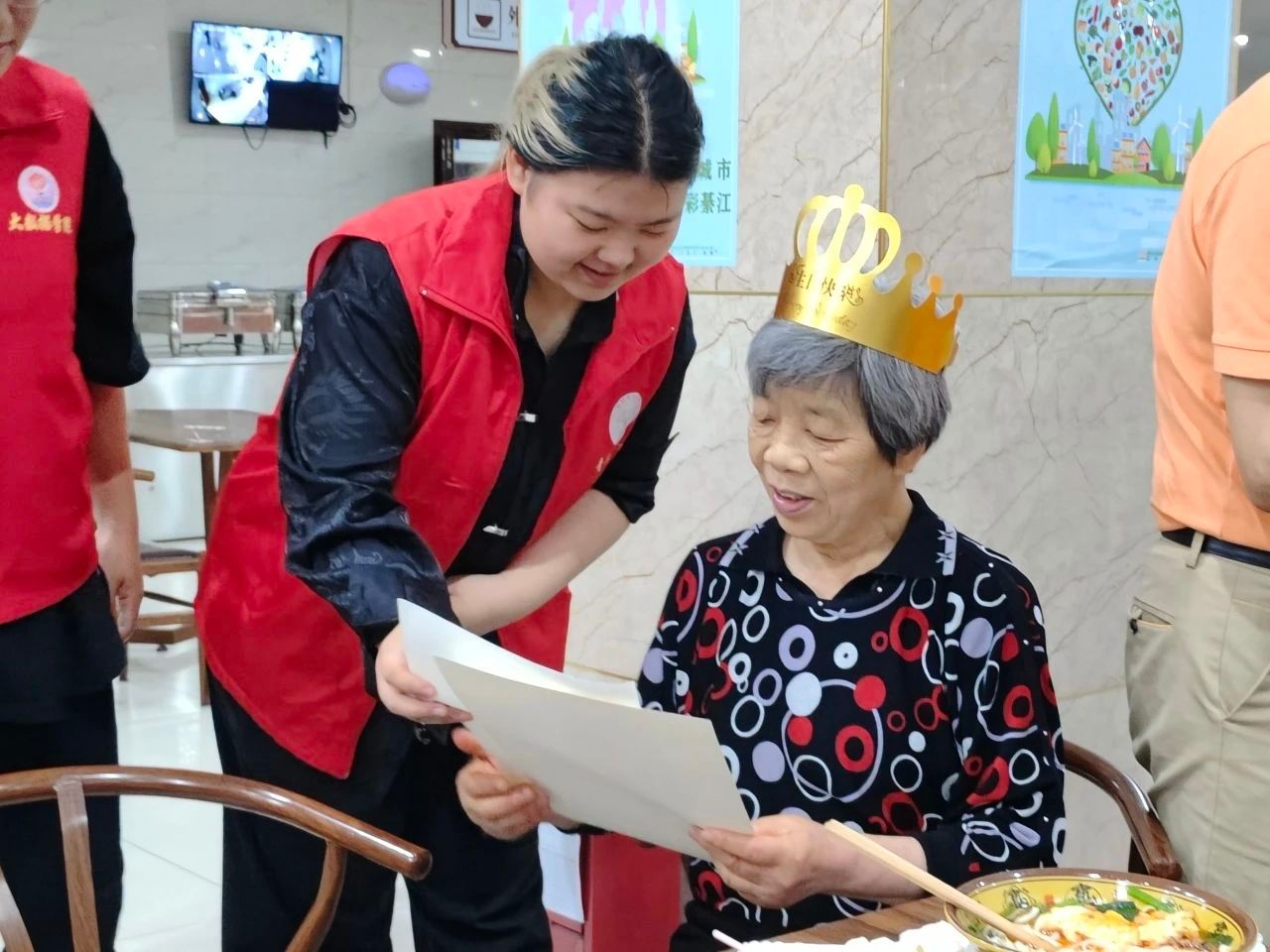 在庆祝活动的过程中,志愿者们还与老人们进行了深入的交流和互动。他们耐心聆听老人们讲述自己的故事和人生经历,分享着彼此的快乐和感悟。这种跨越年龄的交流让志愿者们更加深入地了解了老年人的生活状态和需求,也让老人们感受到了来自年轻人的尊重和关爱。同时,大学生志愿者们也表示,通过这次活动,他们更加深刻地认识到了尊老敬老的重要性,也收获了宝贵的成长经历