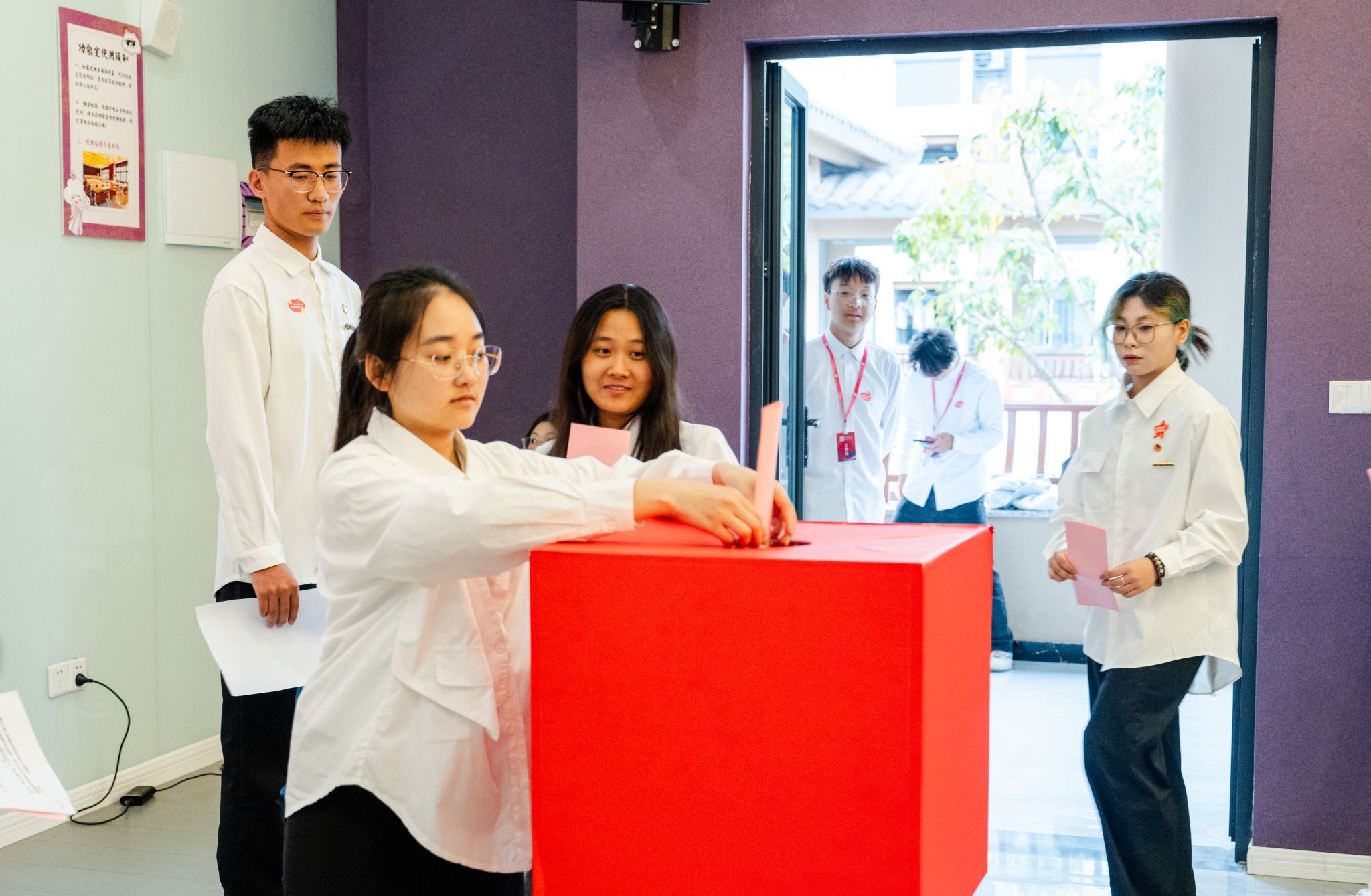 选举开始前,廖炳屹同志宣读《重庆移通学院戏剧影视学院第二次代表大会候选人名单及简介》,30名代表认真查看候选人情况。选举秉承着公平公正公开的原则,以不记名纸质投票方式进行,在总监票人邢程烁同学、总计票人席瑾怡同学的严格监督下,全体代表依次投票。根据《大会选举办法》的规定和选举计票结果,王思涵、刘雪慧、张向琴3名同学当选为重庆通学院戏剧影视学院第二届学生会主席团成员。