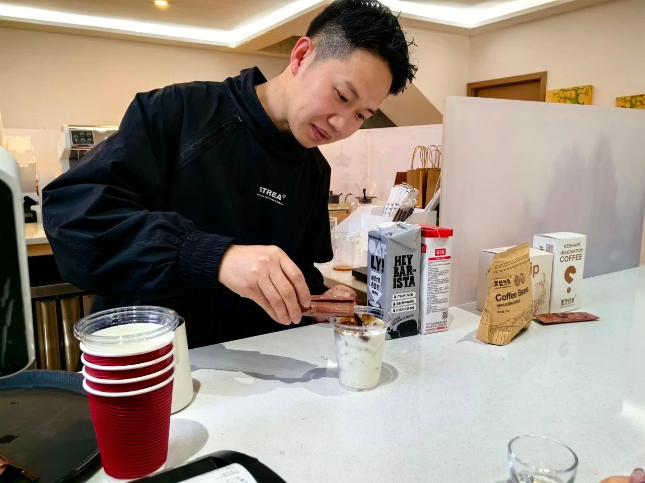 听了骆总的故事后,同学们不禁连连感叹好的创业机会和好的创业心态对于大学生的重要性,意识到国家大环境对当地大学生的支持与保障。骆总也表达了自己对现在大学生就业创业大环境的想法,告诉同学们应当提早考虑并规划自己的职业选择,骆总还表示可以为同学们提供一些就业创业上的帮助,如为同学们提供咖啡文创、插画等的工作体验岗位。最后,骆总为同学们提供了咖啡制作的体验机会,同学们经过亲身体验感到咖啡制作的不易,也感到对此次学习的满足。
