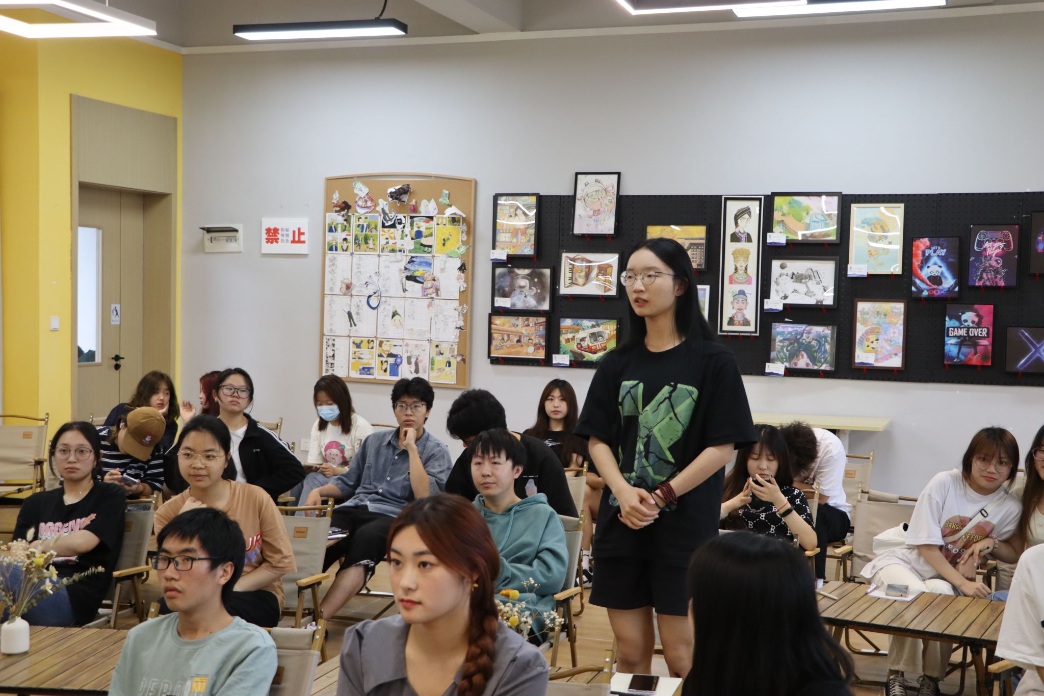 思佳学姐还与同学们进行小互动环节,邀请干事们举例说明发生在我们身边或身上关于“批评”或“赞扬”的实例。来自青协的梁高智同学率先举手,落落大方地讲最近发生在他身上的一件事:他因为前段时间忙于心理剧的排练,导致耽误了青协的答辩准备进度,这一疏忽给其他干事增加了工作量,梁高智同学为此感到十分愧疚,他决心以后对于工作上的冲突做到更合理的安排,不耽误进度、不懈怠责任。青协的另一位干事张悦同学也分享到她代表青协前去答辩的经历,戏影青协作为新成立的团队,干事们都是大一的新生,很多事情还缺乏经验,这次答辩尽管在汇报时有些紧张卡顿,但是也受到了老师的鼓励与表扬,使她增添了许多信心,有动力有决心在未来的工作中继续奋斗前行。其他部门同学也主动分析那个自己的经历和观点。思佳学姐最后也提到“希望大家都能够去做语言的主人,然后精准的去表达去沟通,让自己成为那个很善于表达的人,你不妨大胆一点,你没有那么多观众,就是勇敢地表达自己。”