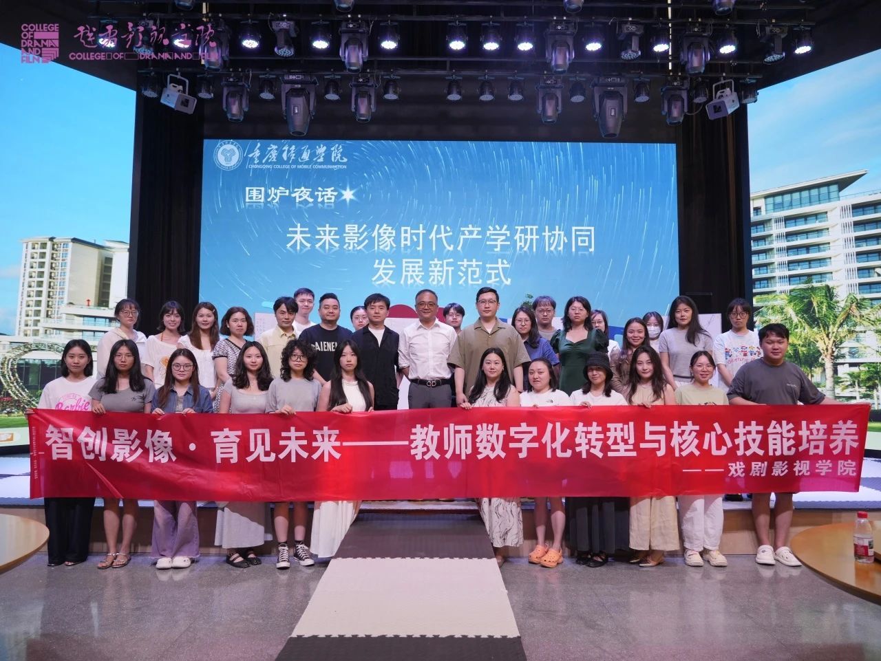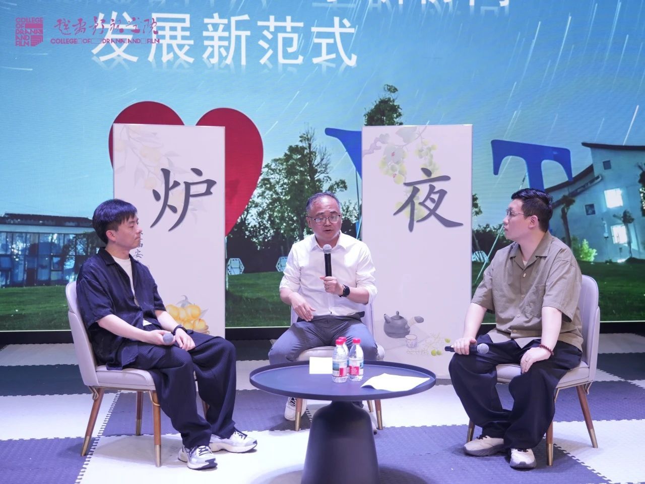 围炉夜话环节聚焦“未来影像时代产学研协同发展新范式”,由程波教授、戏剧影视学院教学副院长秦琦琅、影视文学与美术教研室主任杨帆共同领衔,与全体教师展开深入探讨。