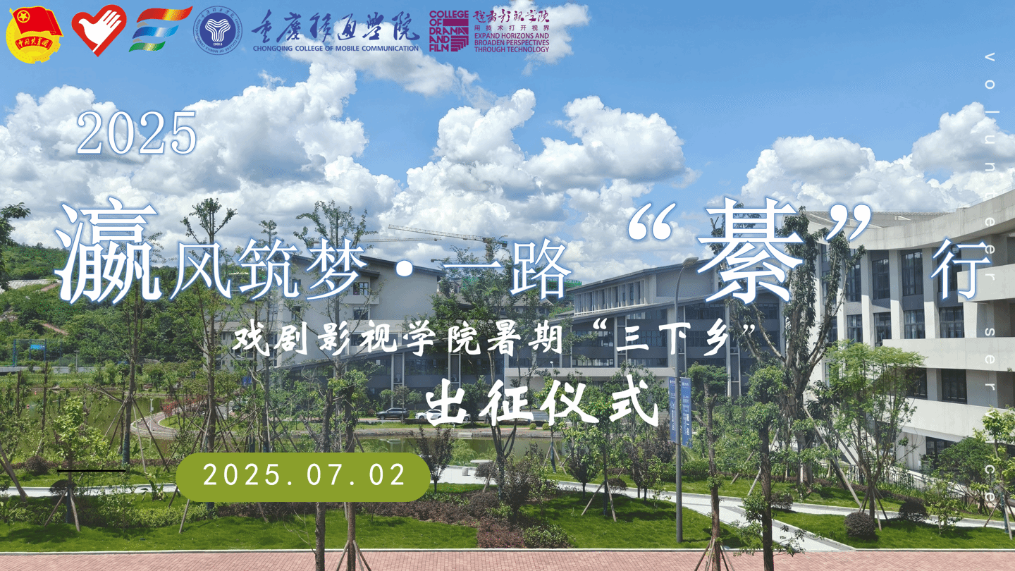 青春的号角已然吹响,奋斗的征程正式启航。随着戏剧影视学院2025年暑期“三下乡”社会实践活动出征仪式圆满收官,“瀛风去文化艺术服务团”与“移綦安理论普及宣讲团”两支队伍整装待发。愿每一位志愿者都能在实践中绽放绚丽光彩,用热血与汗水谱写属于戏影学子的盛夏华章,让青春的光芒照亮乡村的每一寸土地,也照亮自己的成长之路。