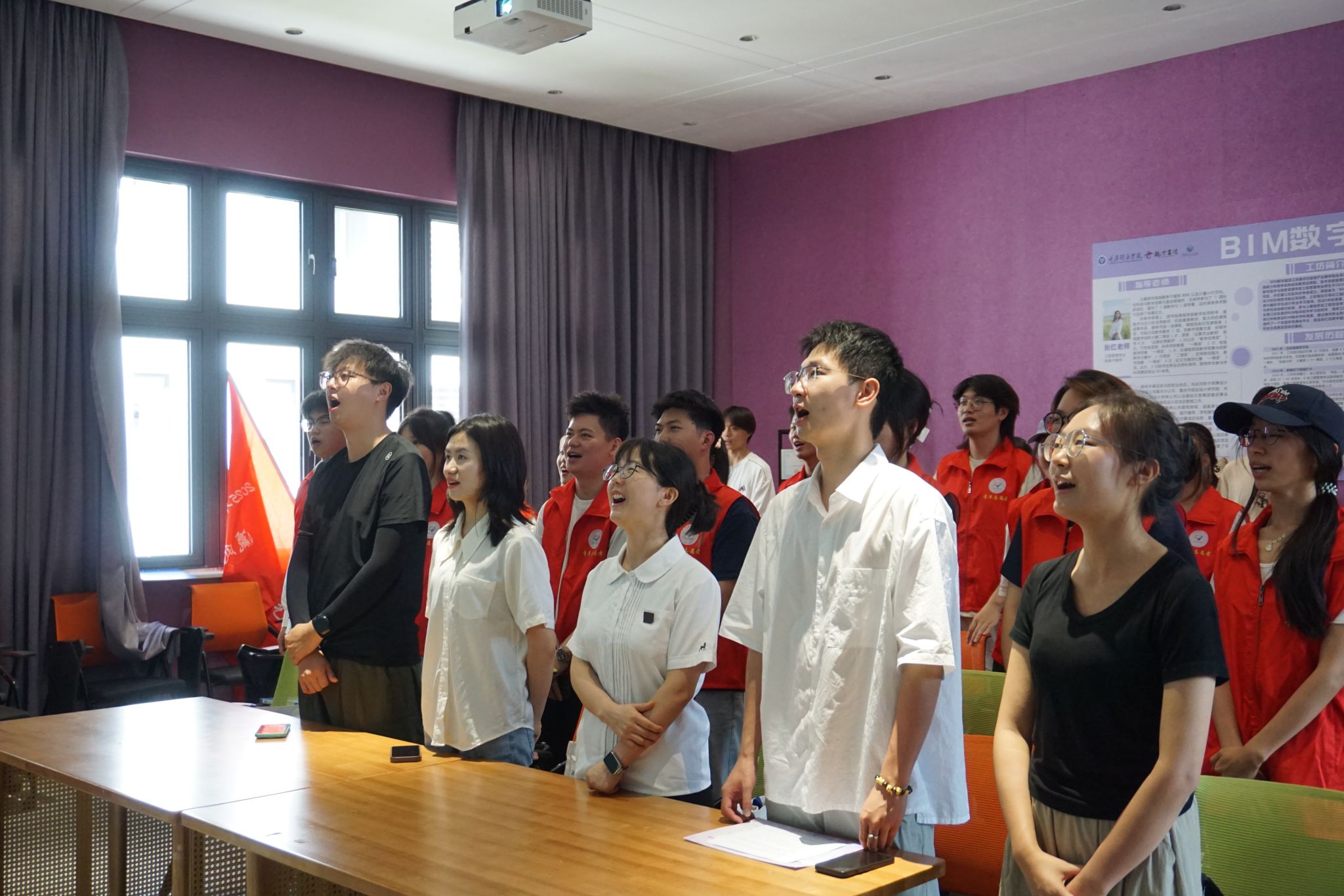 仪式在激昂的团歌声中拉开帷幕,全体成员齐声高唱,歌声嘹亮,唱出了青年学子积极向上的精神风貌和投身社会实践的坚定决心。同样激励着每一位青年学子在乡村广阔的舞台上大展身手,书写青春华章。