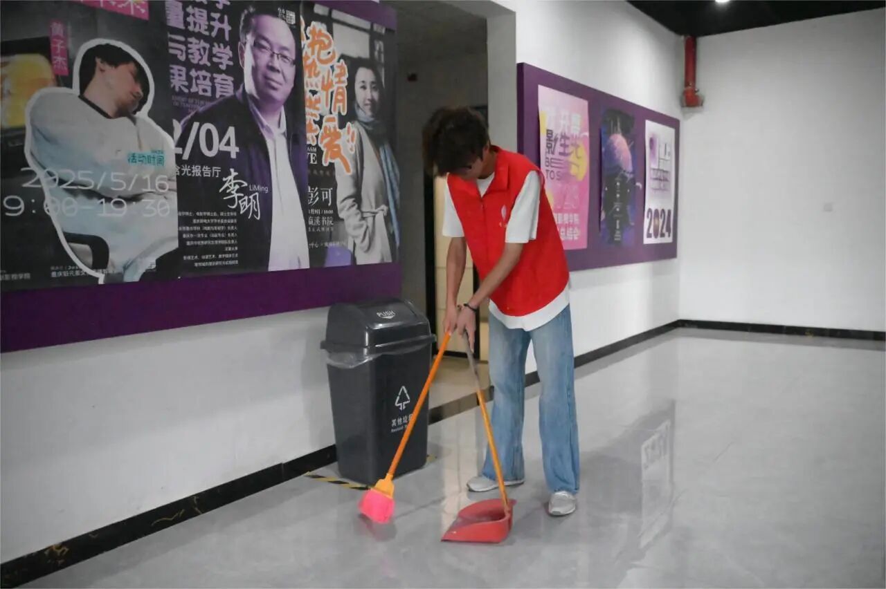 清洁组的同学们手持扫帚,细致清理各个角落的烟蒂和垃圾。他们不放过任何一个卫生死角,从花坛到楼梯转角,从走廊到卫生间门口,都认真进行了清扫。在清理过程中,同学们还特别注意对残留烟头的彻底处理,有效消除了火灾隐患。