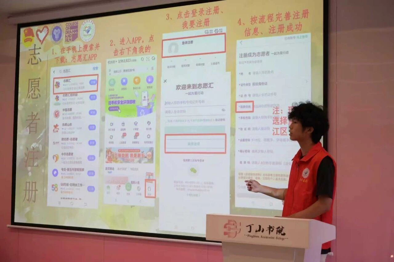 为进一步增强志愿委员团队的服务素养与工作能力,帮助戏娃们更快适应志愿者身份,积极开展我院志愿者队伍的建设工作,推动志愿服务体系化发展,戏剧影视学院青年志愿者协会于9月7日在丁山书院处女座·智慧教室举办了2025级志愿委员培训会。本次培训旨在夯实班级志愿服务基础,细致讲解志愿汇与志愿山城的注册流程,并普及志愿服务的基本知识与技能。