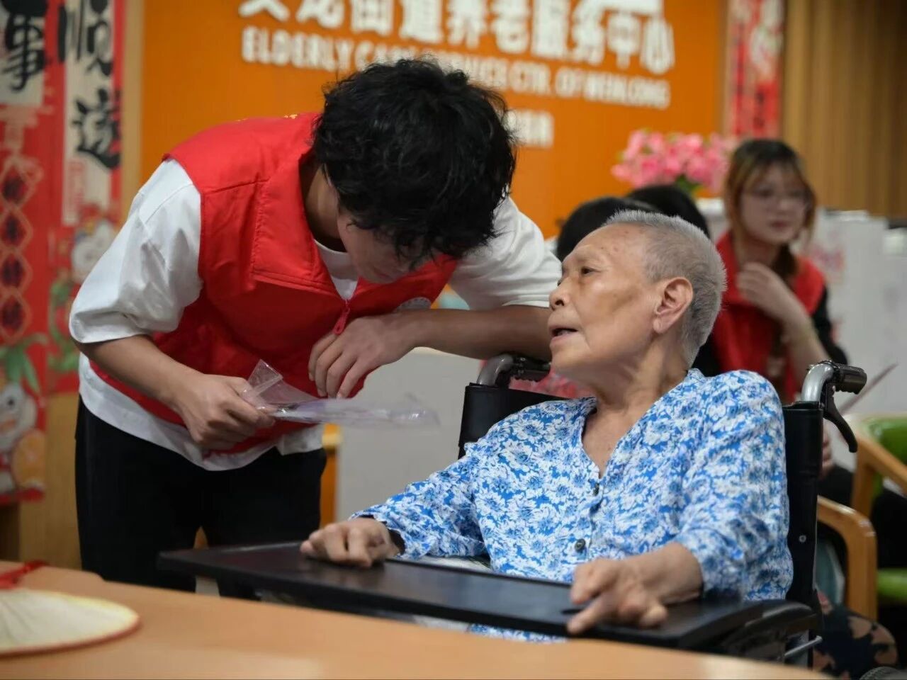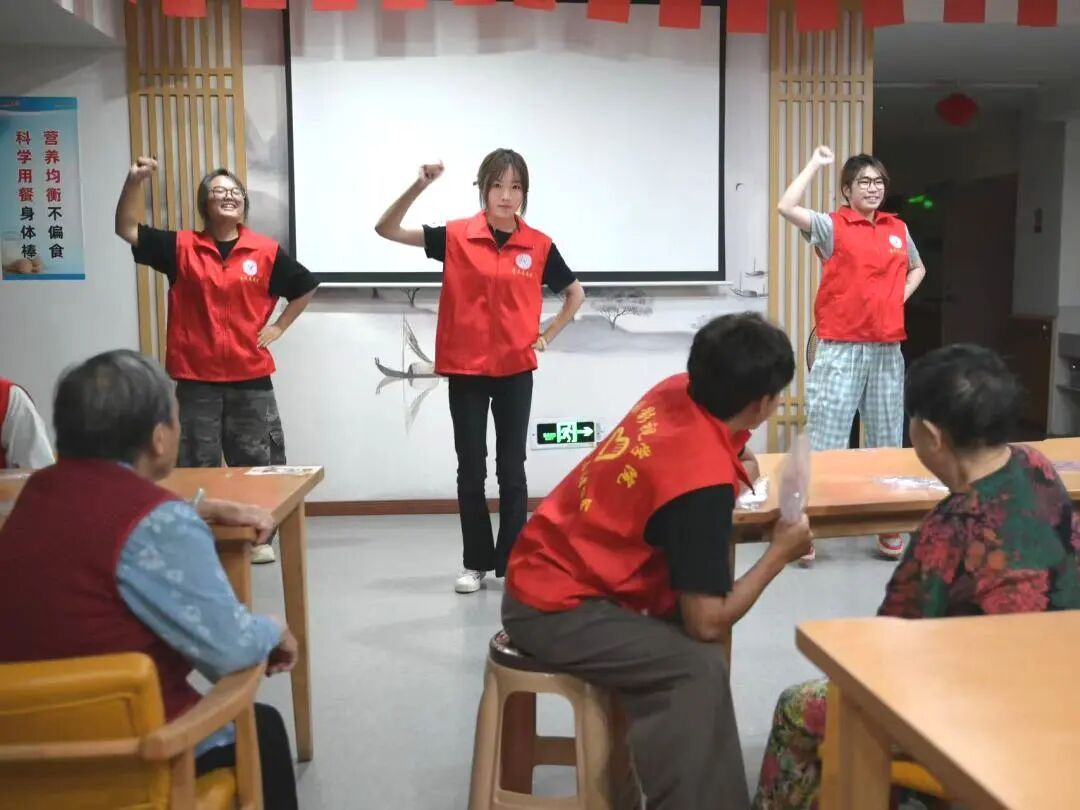 游戏过后,志愿者们带来经典歌曲合唱与简易舞蹈表演。熟悉的旋律响起时,几位长辈忍不住跟着哼唱,志愿者们顺势邀请长辈一同参与,歌声与笑声交织,成为现场最动人的旋律。活动尾声,志愿者为每位参与的长辈送上精心准备的纪念奖品,并组织全体人员拍摄大合影,镜头在此刻定格下一张张笑脸。