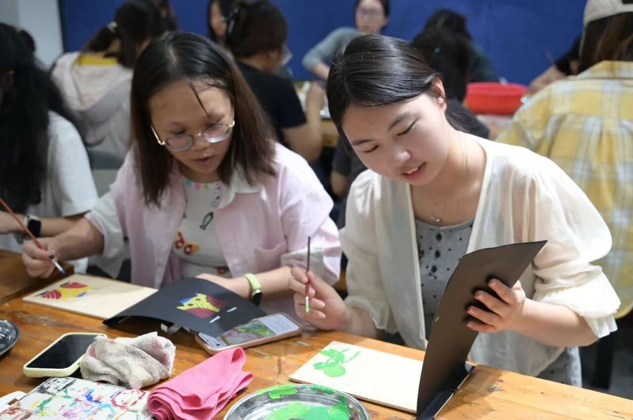 创作中,大家积极向现场艺术家请教交流,不断优化作品,尽显专业素养与学习能力。现场秩序井然,志愿者分工协作、默契配合,不仅高质量完成版画创作,更在集体创作中相互学习、共同进步。