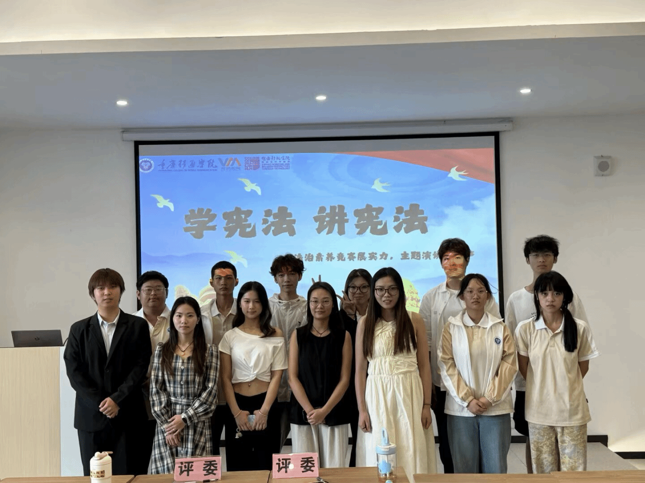 南江书院审问启迪功能室里,宪法主题演讲比赛热烈开赛。由黄天宇主持活动,周江琴、陈盈西老师担任评委。选手们围绕宪法展风采:或激昂阐述宪法意义,或结合生活讲法治故事,现场掌声不断。赛后,陈盈西老师肯定选手对宪法内涵的深刻阐释,建议增加细节案例与眼神交流;周江琴老师逐一点评,挖掘亮点并提改进方向。最终演讲比赛评选结果出炉:第一名杜佳蔓,第二名韩扬、王康力,第三名罗文灏、李联莉,邓智睿获优秀奖。