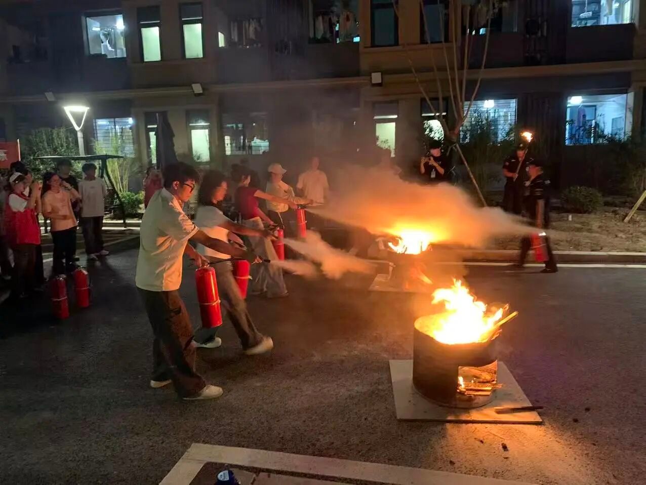暮色四合之际,校园内的消防演练随即拉开帷幕。警报声响起,戏娃们反应迅速,捂住口鼻、低姿弯腰,按照预定路线有序撤离,全程井然有序的完成演练。灭火器实操环节,大家认真听讲解、学操作,亲手按下压把扑灭模拟火源,在夜色中掌握了守护安全的实用技能,为军训增添了一堂“硬核”必修课。